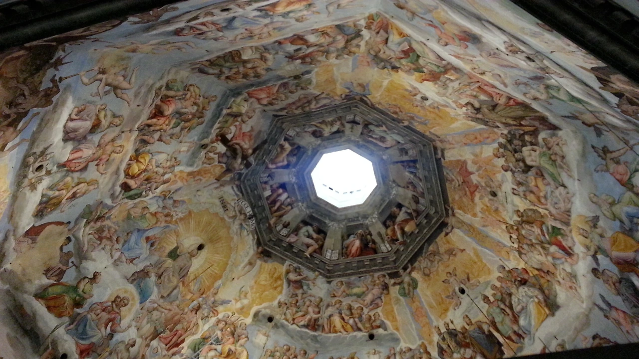 이 중 가장 사람이 많다는 쿠폴라에 먼저 올라가 보기로 했다. 계단이 400개가 넘어 힘들다고 들었지만 피렌체의 전경이 너무나 궁금했기에 조금의 망설임도 없이 걸음을 옮겼다. 일찍 온 덕에 많이 기다리지 않고 입장해서 계단을 오르기 시작했다. 올라가면서 두오모 내부의 천장화를 가까이 볼 수 있었는데 마치 사람이 살아있는 것처럼 입체적으로 그림이 그려져 있어 깜짝 놀랐다.