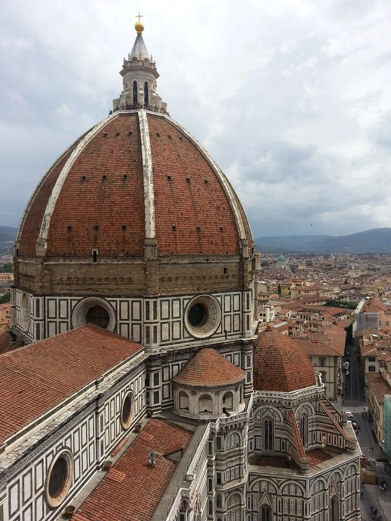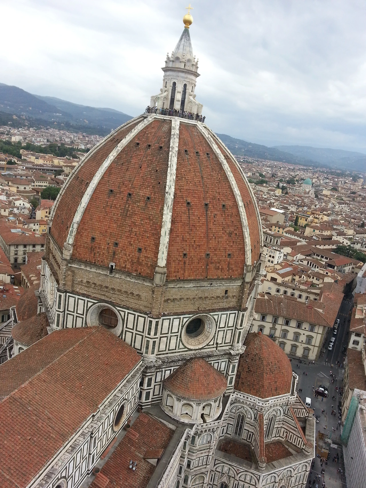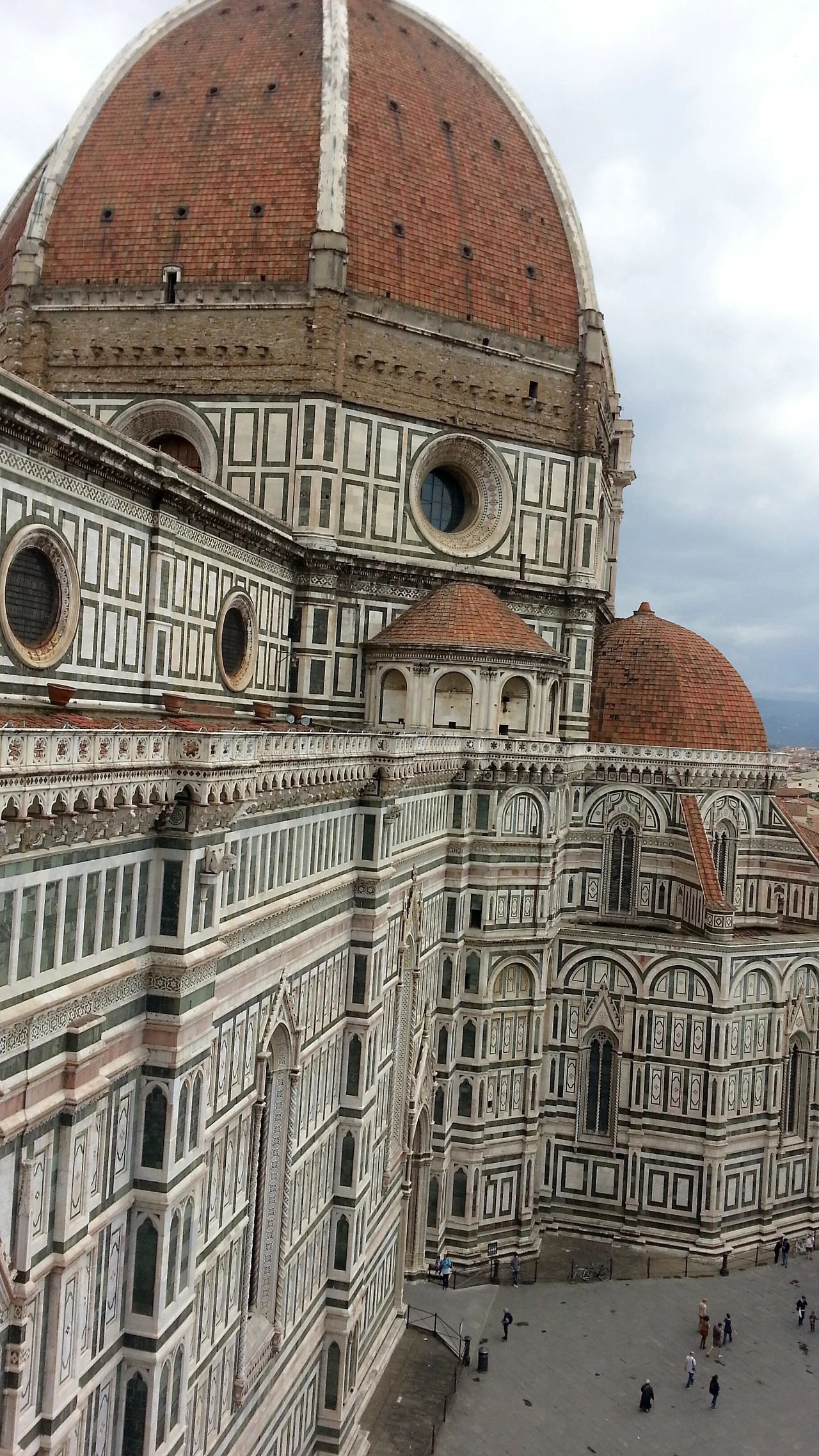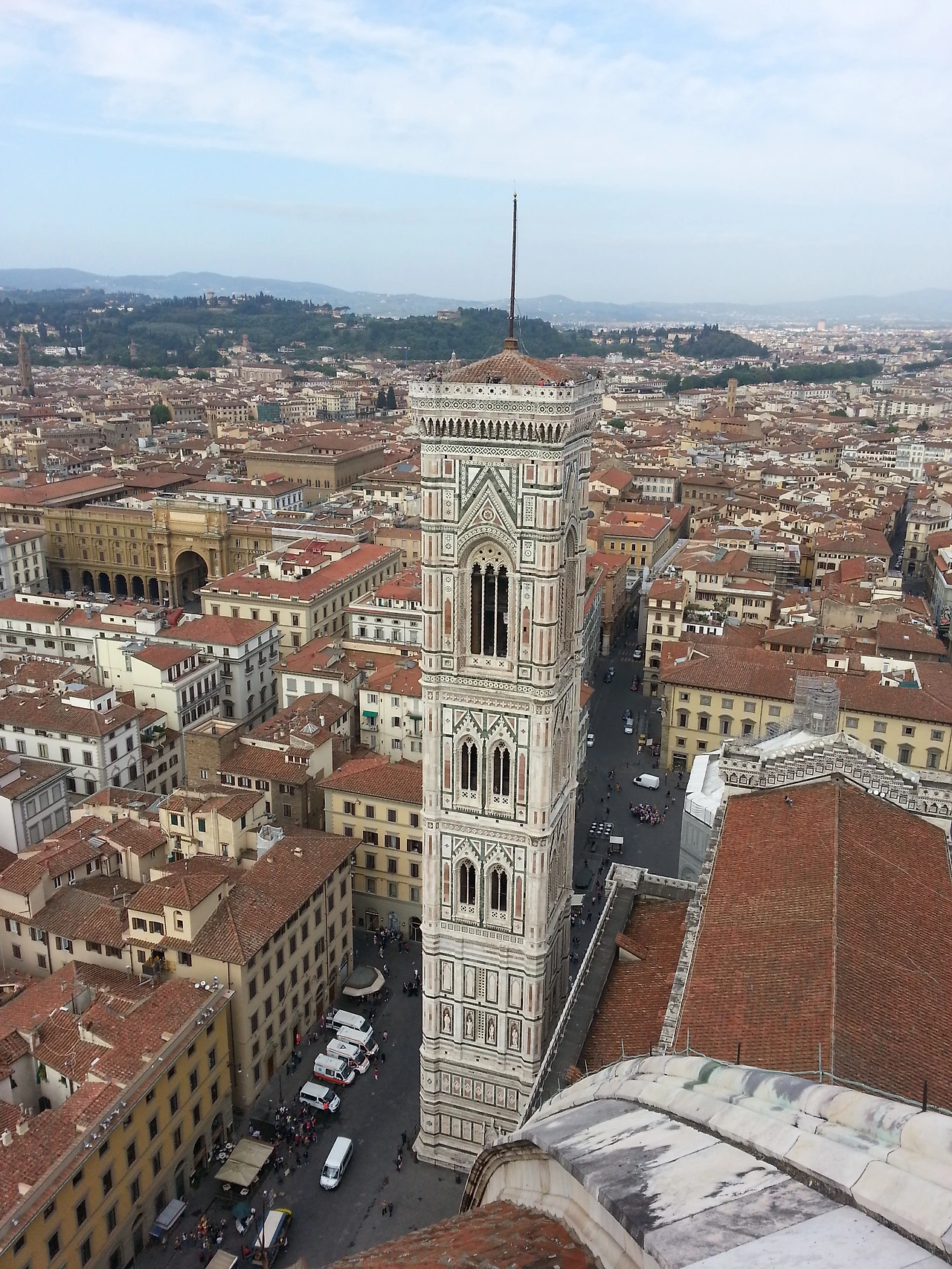 피렌체의 시가지가 한눈에 보인다. 맞은편에는 조토의 종탑 우뚝 서 있고, 붉은색 지붕들이 온 마을을 덮고 있다. 도시 자체가 유네스코에 등록되어 있다 하더니 과연 그럴만했다. 옛 것을 그대로 간직하고 있는 도시. 상상했던 피렌체의 모습보다 훨씬 더 멋졌다. 고층건물 하나 없는 이 작은 도시에 관광객이 넘쳐나는 것은 당연했다.이곳에 올라오니 종탑도 꼭 올라가 봐야겠다는 생각이 들었다. 종탑에서 바라보는 두오모의 모습이 너무 궁금해졌다.