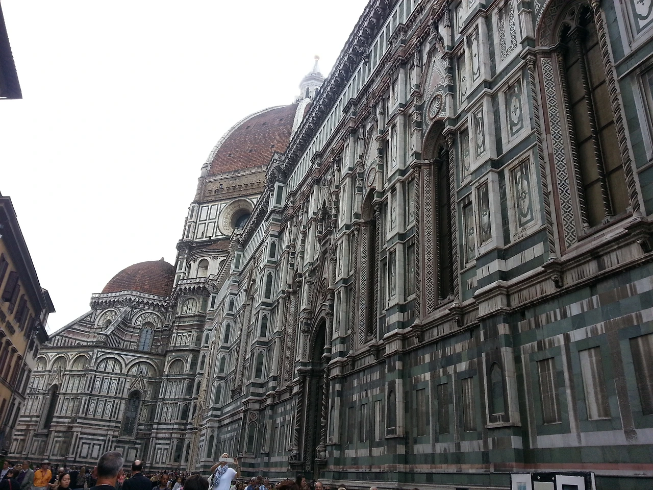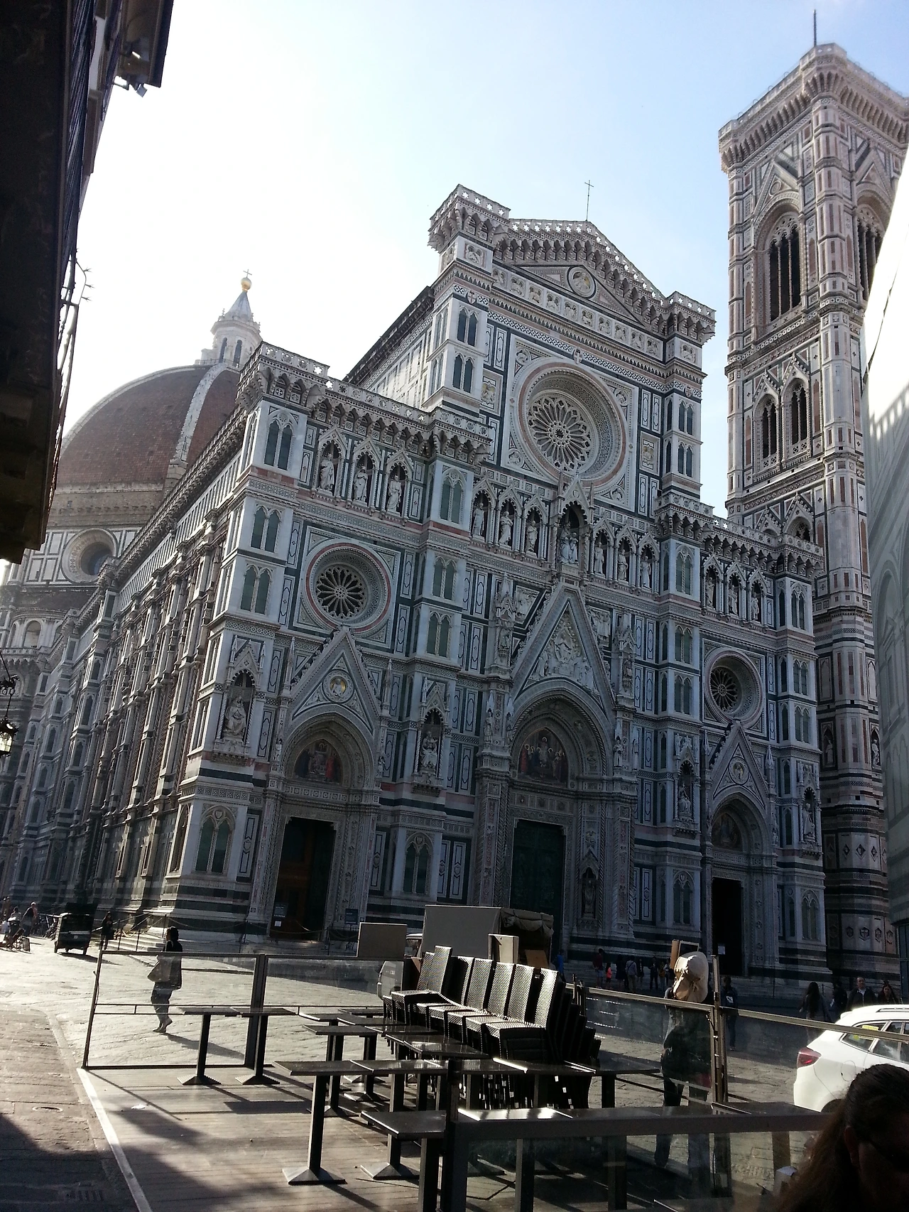 두오모에 도착하니 고급스러운 건축양식과 색깔이 내 눈을 사로잡는다. 나도 모르게 육성으로 감탄사가 나와버렸다. 멋지고 멋지고 또 멋졌다. 오묘한 색과 문양의 조화가 정말 볼만했다. 오전 8시도 채 안되어 도착하니 나름 한산해서 두오모의 자태를 이리저리 여유롭게 감상할 수 있었다. 티켓 오피스에 가서 두오모 지붕인 쿠폴라, 조토의 종탑, 두오모 내부, 세례당을 갈 수 있는 통합권을 끊었다.