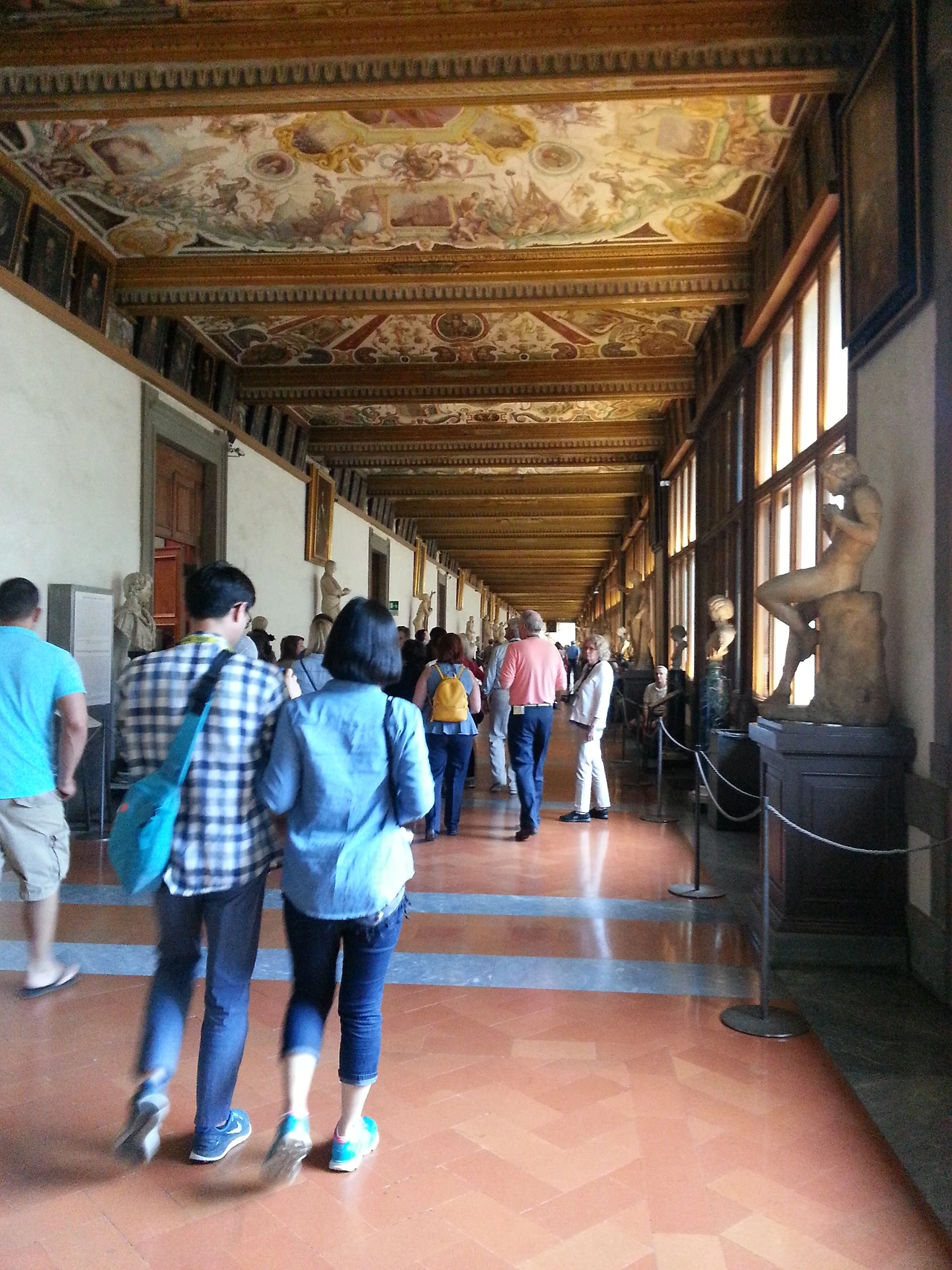 우피치 미술관은 작품들이 어마어마하게 많았다.(당시 너무 피곤해서 그렇게 느꼈을 수도 있다.) 바티칸 투어에서 들었던 미술 작품과도 연결되는 것들이 많아 이해는 한층 더 잘되었고, 그림을 보는 재미도 있었다. 단지 중간에 쉬어가는 곳이 없어서 다리가 너무 아파 쓰러질 지경이었다. 이른 아침부터 무리했는데 오후에 미술관 투어까지 하다니. 무슨 생각으로 이렇게 스케줄을 짰는지 속으로 얼마나 자책했는지 모른다. 체력적으로 좀 더 여유가 있었다면 그림을 보는 즐거움이 더 컸을 것 같았다.