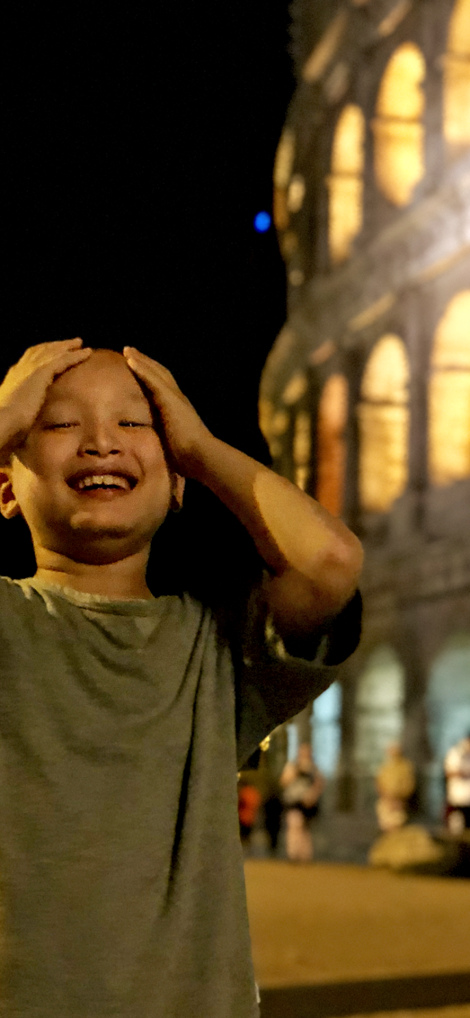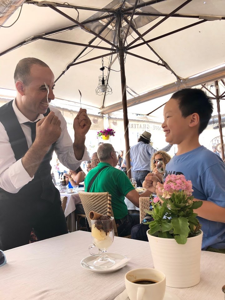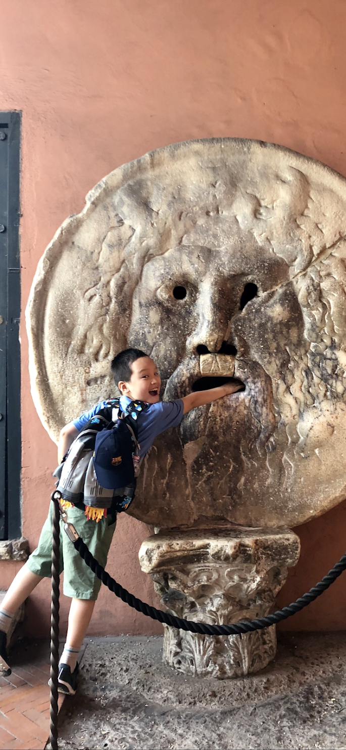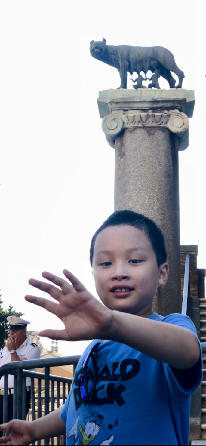 바티칸 근처 노천 카페에서 커피와 함께 휴식을 취하는데 작은 새 두어 마리가 다가와 앉습니다. 같이 놀아보려는 듯 민 군이 손을 뻗자 바로 날아가 버립니다.