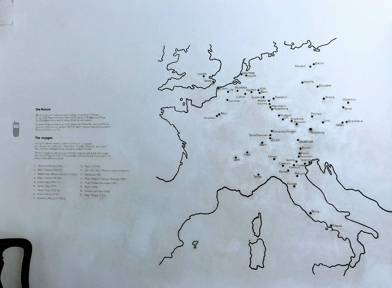 모차르트는 어려서부터 10년이 넘는 세월을 어려서부터 유럽 각지를 여행하며 음악을 배우고, 연주하고, 다양한 문화와 사람과 교류하며 보냈다. 여행한 날은 짧은 30여 년 그의 일생 중 약 3분의 1에 해당하는 총 3,720일이나 됐다.
