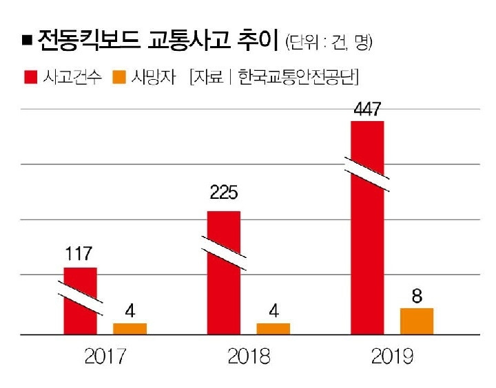 이런저런 이유로, 전동 킥보드는 위험합니다. 자전거보다 바퀴가 작으면서 빠르고 신체 대부분이 그대로 노출된 체 운행하니 어쩔 수가 없습니다. 타시는 분들은 정말 조심해서 타셔야 합니다.