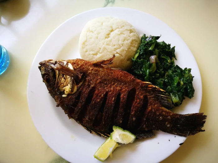 현지인들 식당에 갈만한 여유나 배짱이 생긴다면 자주 접하게 될 메뉴다. 케냐, 우간다, 탄자니아 세 나라에 걸쳐 자리 잡은 빅토리아 호수에서 잡힌 민물고기를 튀겨 우갈리라는 음식을 시금치를 곁들여 먹는다. 우갈리는 옥수수 전분을 반죽한 것으로, 먹을 때는 손가락과 손바닥으로 꼬물꼬물 반죽을 해서 먹는다. 물론 식기 없이 손가락으로만 먹어야 하며, 그래서 식당마다 손을 씻을 수 있는 시설이 여기저기 있다.