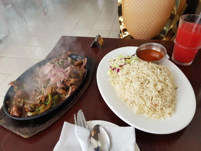 낙타, 염소 등 다양한 종류의 고기가 '알흠답게' 배열되어있는 소말리아 음식점과 나이로비 시내 피자 전문점