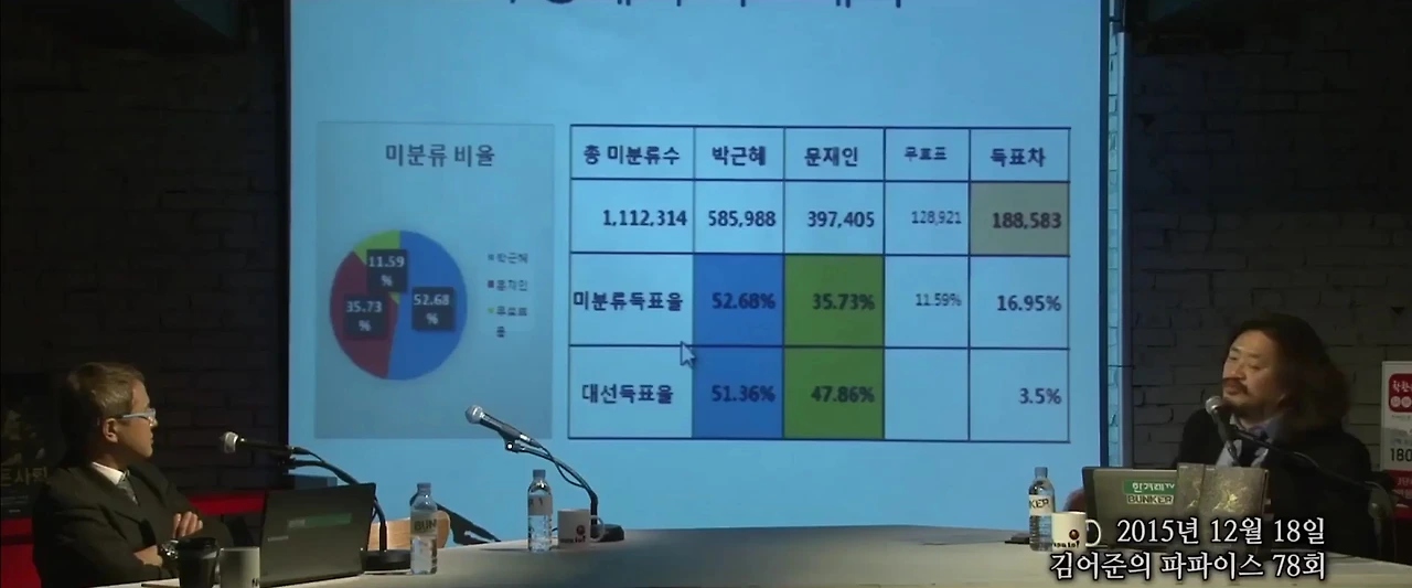 이 외에도 아주 비근한 예를 들자면 박근혜 후보는 상대적으로 고령층의 지지를 많이 받았고, 고령층일수록 투표를 애매하게 하는 경향이 있어 미분류표가 될 가능성이 높다면 박근혜 후보의 미분류표 중 득표율이 높을 수는 있습니다. 물론 이것이 모든 것을 설명할 수는 없지만 충분히 일부분을 설명할 수 있는 요인(Factor) 일 수는 있습니다.