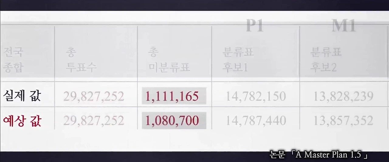 다큐멘터리에서 현화신 교수님께서는 K값이 1.5를 중심으로 분포를 그린다고, 개표기가 "범인"이라고 생각한다고 얘기하셨습니다. 분명 개표기가 K값이 1.5를 그리는 이유일 가능성이 가장 크겠지만 그것이 반드시 개표기에 임의적인 조작이 가해졌다는 얘기는 아닙니다.