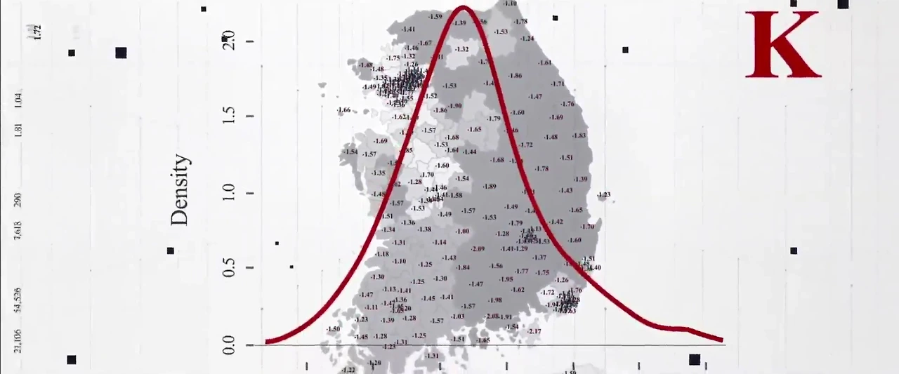 1. 이 영상에서 K값이 1.5라고 하는 것은 1.5에 가까운 수치가 나온 전체 251개 개표소에서 모두 1.5에 가까운 수치가 나왔다는 것이 아니라 K값이 1.5에 가깝게 나온 빈도수가 가장 높다는 것입니다. 이 값을 중심으로 전국 251개 개표소의 K값들이 정규분포에 가까운 "분포"를 그렸다는 것입니다.