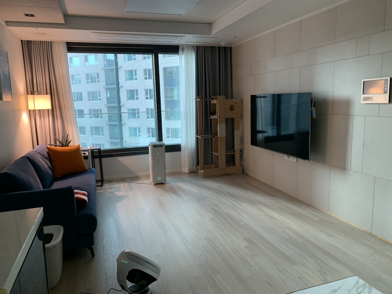 TV 설치는 벽걸이로 하려다가 배송 업체에 스탠드로 요청했다.이 이유는 밑에 벽걸이 TV 부분에서 자세히.
