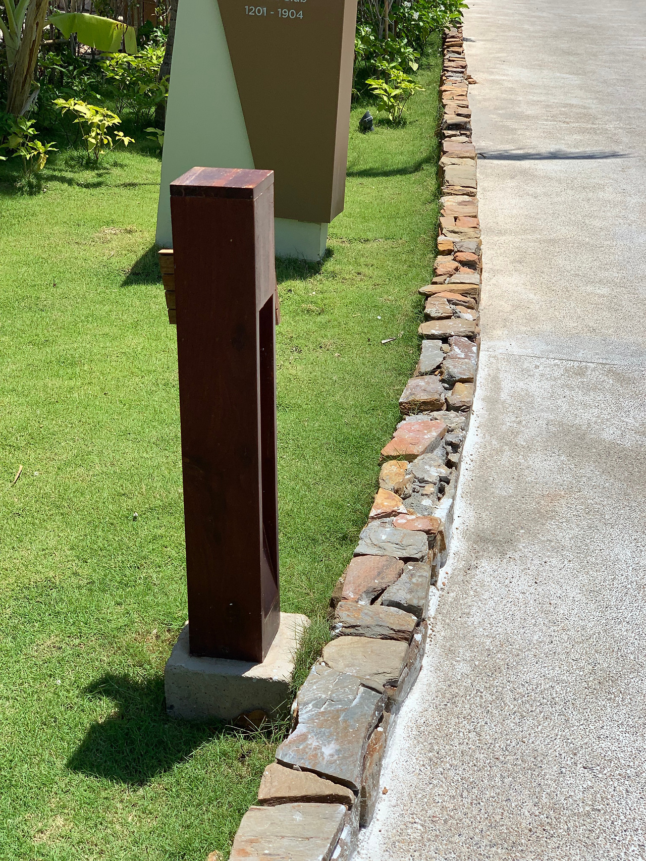 퓨전리조트는 공간을 구성하는 데 디테일에 하나하나에 신경 쓴 티가 나는 리조트였습니다. 벽돌로 만든 담벼락과 길은 물론 공간을 구성하는 쓰레기통, 표지판까지 일관된 디자인 톤으로 꾸며 주변의 자연과 조화로운 풍경을 자아냅니다.