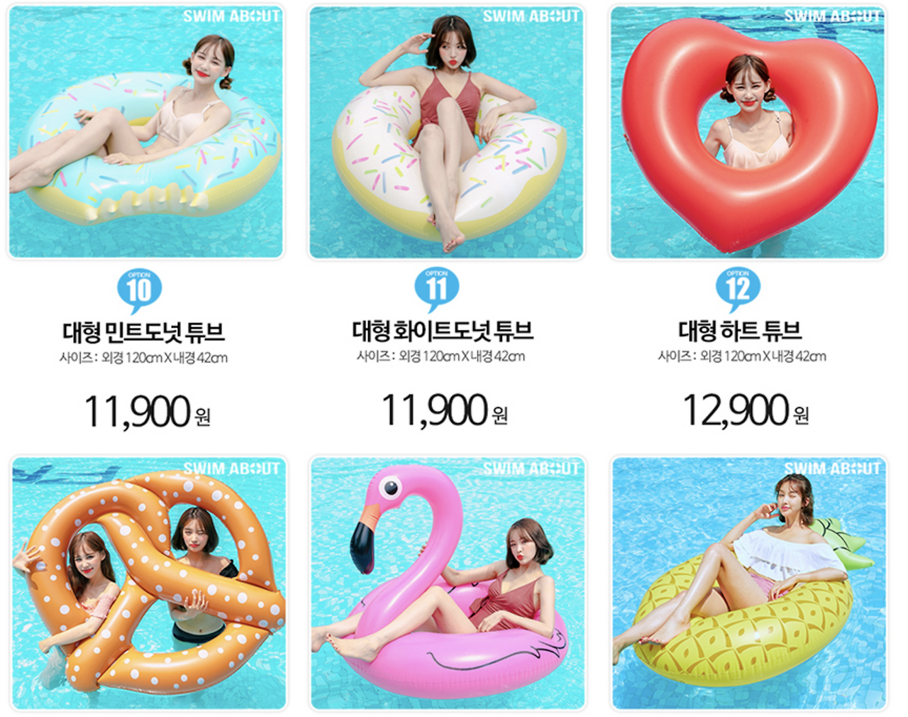 그나저나 퓨전 리조트의 한국 분들은 다들 튜브를 준비해오셨고, 대부분이 저도 검색해서 알게되었고, 저도 구매한 스윔어바웃 제품들이었습니다 ㅋ