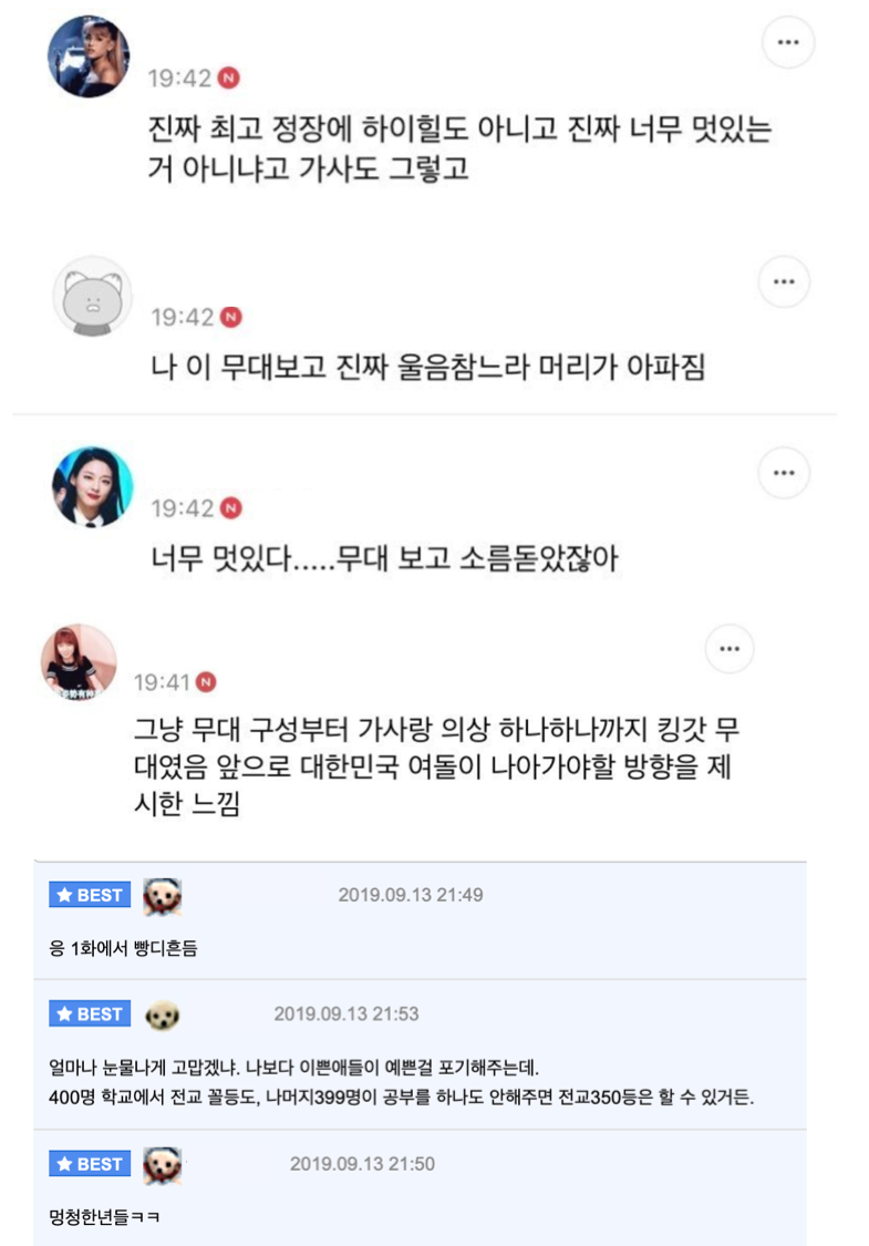 지난 9월 12일 방영된 퀸덤 3화에서 AOA가 커버한 너나 해(원곡 마마무) 무대가 화제였습니다. 너나 해 무대는 여러모로 흥미롭습니다. 나온지 1년 된 노래를 커버했을 뿐인데 화제가 된 것도 신기하고 반응이 극명하게 갈리는 것은 더 신기합니다. AOA 너나해 무대를 두고 페미니즘을 옹호하는 측에서는 찬사를, 그리고 이에 대해 거부감을 가진 측에서는 찬사를 보내는 반응에 대한 비아냥을 보냈습니다.