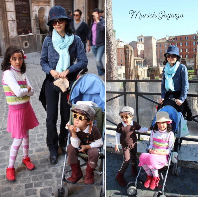 큰아이는 7살, 작은아이는 4살이었다. 대중교통 이용 시 소매치기를 가장 많이 당한다고 해서 바티칸 궁정 갈 때를 제외하고는 전부 걸어서 이동했었다. 여행 시 휴대용 유모차를 가지고 다녔기 때문에 아이들도 걷는 데는 큰 문제없었다. 가끔은 서로 앉겠다며 다투기도 했고 어떨 때는 서로 앉지 않겠다고 다투기도 했다. 때로는 큰 아이가 먼저 앉고 작은 아이를 자기 무릎에 앉히기도 하면서 장거리 여행에 나름대로 적응해 가는 듯했다.