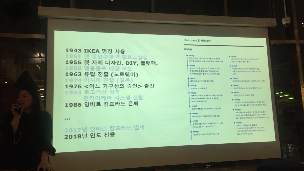 매거진B의 이케아 편을 담당한 에디터가 나와 매거진에 대한 소개와 더불어 본격적으로 이케아에 대한 이야기가 시작되었다. 사실, 이케아가 오래된 브랜드라는 것은 알고 있었지만 1941년에 시작된 브랜드인 것은 이번에 처음 알았다. 사업에 감을 타고난 창업자 <잉바르 캄프라드> 가 만든 이케아는 무엇보다 이케아라는 브랜드에 국가의 이미지! 스웨덴의 이미지가 잘 녹아들어 있다. 파랑과 노란색을 사용한 스웨덴 국기와 마찬가지로 이케아도 브랜드 컬러로 파랑을 사용한다.