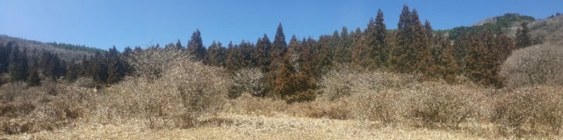 며칠 날씨가 차분해지길 기다린 후 다시 남편을 재촉했다. 마음이 조급해서 우리는 바로 굼부리로 직행하였다. 잣담이 늘어선 삼나무 숲길을 지나 햇살이 가득 들어찬 굼부리로 들어섰다. 굼부리의 규모가 그리 크지는 않았지만 그만큼 더 아늑한 느낌이 들었다. 나는 제자리에 서서 360도를 돌며 오름 능선을 카메라에 파노라마로 담았다. 잎을 모두 떨구어낸 나목의 군락은 나뭇가지 사이사이로 햇살이 스며들어 따스하고 포근해 보였다. 군데군데 상록의 삼나무 숲은 힘차게 하늘로 솟아올랐다.