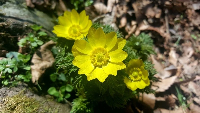 능선 따라 걷는 내내 지난 번에는 보이지 않던 세복수초가 어느새 얼어붙었던 땅을 뚫고 앞다투어 얼굴을 내밀며 절정의 아름다움을 뽐내고 있었다.능선 길이 끝나고 당도한 굼부리 안에도 온통 제 세상을 만나 노랑과 초록의 융단을 깔고 있었다. 육지에서 사진을 찍으러 온 작가가 세복수초는 제주에서만 자생하며 잎이 가늘어서 붙여진 이름이라고 알려주었다.나는 세복수초가 봄 햇살에 활짝 웃으니 정말 예쁘다고 답하며 함께 기뻐하였다. 이렇게 해마다 3월이 되면 이 꽃들이 보고 싶어서 몸이 근질거릴 정도이다.