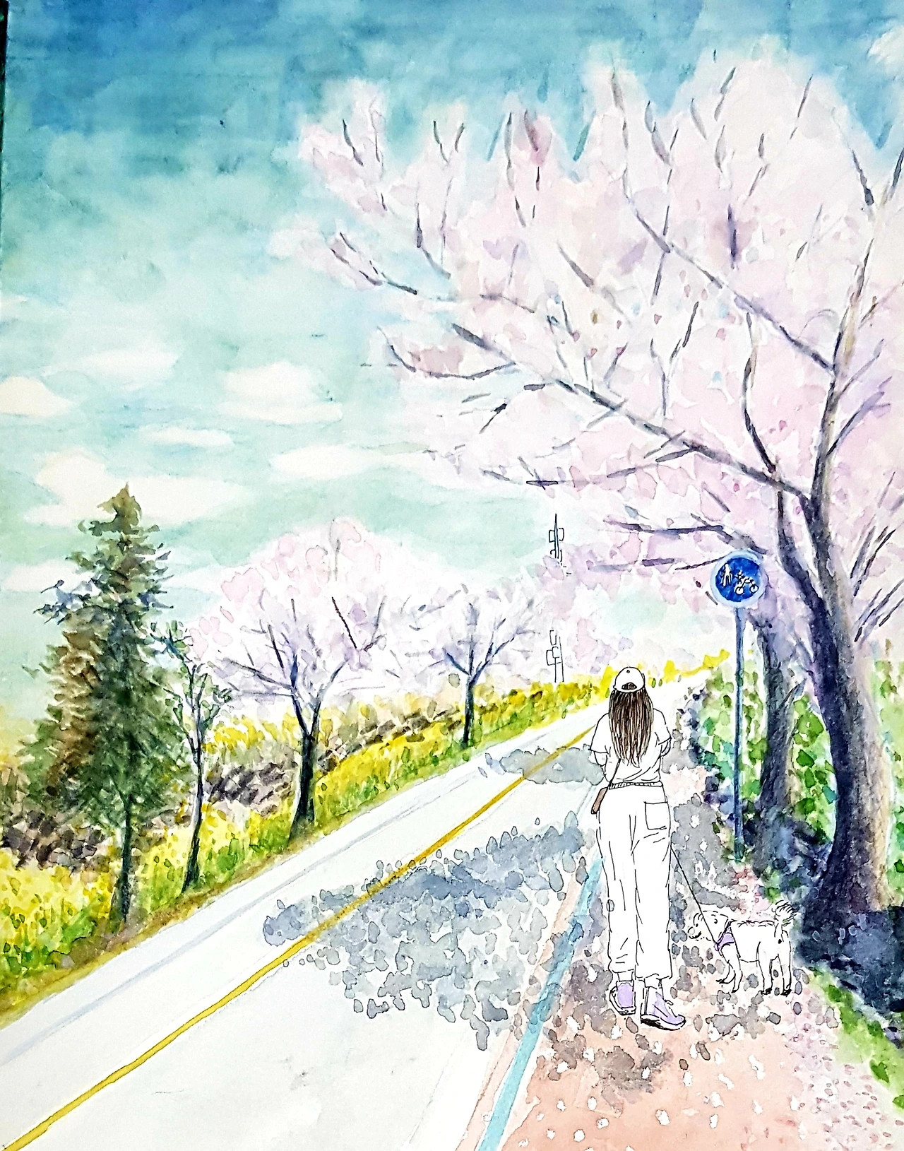 4월이 되면서 날은 더욱 화창해졌다. 햇살이 정말 화사하다. 꽃들이 피어나기에 더없이 좋은 계절인 것이다. 집안에만 있기에는 날이 너무 아운지 딸아이는 구와 강아지 호두를 핑계 삼아 매일 으로 쏘다녔다. 하긴 젊을 때 잘 놀아야 늙어서도 잘 놀고 인생이 풍요로워진다. 꽃잔치가 날마다 펼쳐지는 것도 아니 아직은 벚꽃이 달려있을 때 노는 것도 좋을 것이다. 덩달아 나도 시간이 될 때마다 함께 동행하며 봄날을 만끽했다.