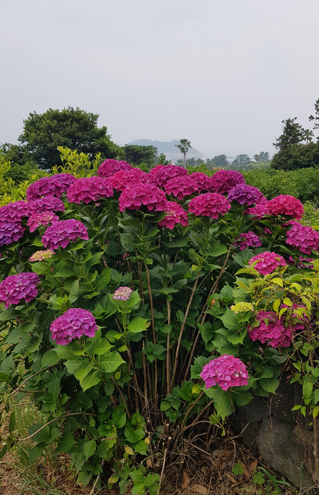 동생은 제주에서도 학기말 업무를 처리하느라 여전히 바빴다. 하지만6월의 수국을 놓치게 할 수는 없었다. 잠시 장마가 주춤한 사이를 틈타 우리는 보롬왓으로 달려갔다. 보롬왓은 바람이 몰아치는 들판을 의미한다. 버려진 30만 평의 황무지가한울 영농조합에 의해 메밀밭으로 개간되었고, 2015년 축제를 시작하며 메밀의 주산지가 강원도 봉평이 아닌 제주도임을 널리 알렸다. 요즘은 메밀 외에도 계절마다 다양한 꽃을 재배하여 관광객을 모으고있다. 농업이 1차에서 6차 산업으로 도약하는 본보기가 되고 있다.