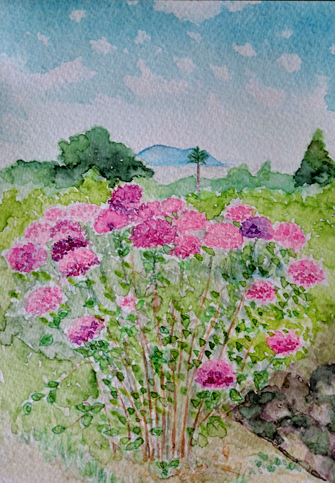 난산리 수국은 주인의 게으름이 불러온 참사로 잡초가 어마무시로 무성한 땅에서도 잘 자라주었다. 내가 들인 수고 이상으로 곱고 아름답게 피어줘서 너무 고맙다. 동생은 난산리 밭의 수국이 제일 탐스럽고 색도 곱다고 칭찬하였다. 어디 감히 보롬왓 수국에 견줄까마는, 피는 물보다 진하다고 언니의 오랜 정성을 보듬어주고 싶은 우애와 배려라는 걸 내가 모를 리 있겠는가. 우리들 얼굴에 수국처럼 둥근 웃음이 피어올랐다.