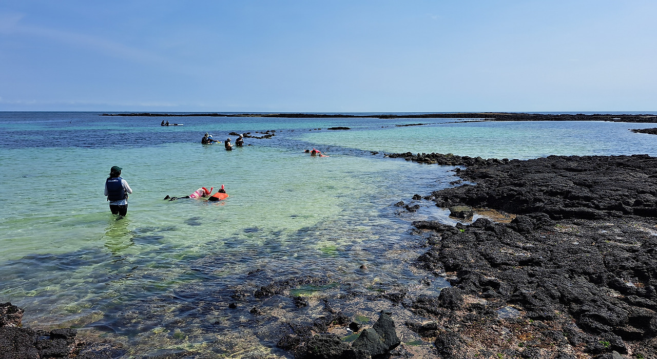 차차 스노클링에 취미를 붙이면서는, 여기저기 알려지지 않은 바다를 찾아다니기 시작하였다. 제주 토박이 친구가 안내하는 곳과 입도한 친구가 물색해 둔 곳을 열심히 따라다녔다. 그렇게 여러 곳을 전전하다가, 결국 내가 안착한 곳은 외돌개로 유명한황우지 선녀탕이다. 전국을 돌아다니다가 이만한 곳이 없다며 황우지에 정착한 어느 스노클링 애호가의 이야기가 바람결에 들려왔다. 이곳은 제주의 핫플레이스다. 도민답게 뜨거운 한낮에는 관광객들에게 내어주고, 나는 한가로이 새벽에 즐긴다.