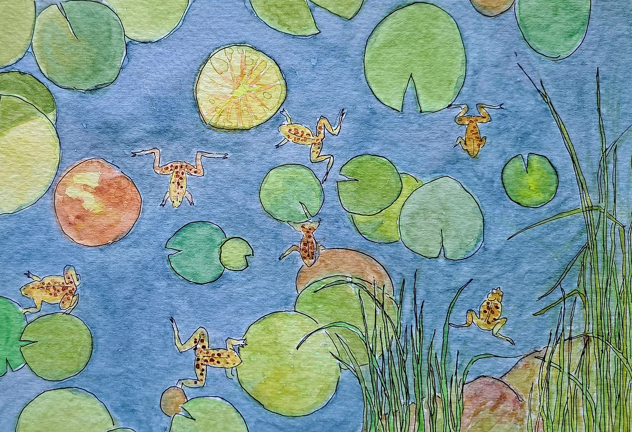 어느 날 여느 때처럼 이른 시간에 아침 산책을 나섰다. 정모시 공원을 돌아 서복 공원으로 이어지는 길이 그날따라 무척 시끄러웠다. 천지가 개벽할 소리에 이끌려 당도한 곳은 공원 안의 작은 연못이었다. 연못위 데크로 만들어진 다리로 올라섰다. 오 마이 갓! 내 생애 이렇게 많은 개구리를 본 적이 있던가. 아직 수련이 번지기 전의 한산한 연못은 온통 개구리 천지였다. 생존과 번식을 위한 열정의 무대가 펼쳐지고 있었다. 짝을 찾은 개구리는 아직 보이지 않았지만, 그것은 생의 절정을 향해 질주하는 뜨겁고도 처절한 떼창이었다.