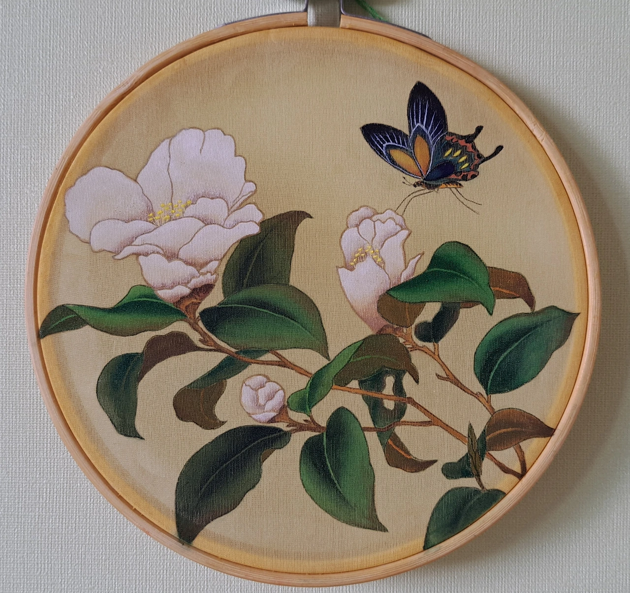 잎이 다 피어나고, 이제 꽃이 깨어날 차례였다. 하얀색이라 먼저 뒷면을 호분(흰색)으로 칠해서 은은하게 색을 입혔다. 명암을 주기 위해 앞면에서 살짝 어둡게 바림을 하면서 표현했고, 다시 호분을 덧칠하면서 화사하게 마무리하였다. 나비는 도안이 너무 섬세하여 겁을 잔뜩 먹었다. 그러나 정신을 차리고 차근차근 색을 만들어 한 땀씩 수를 놓듯이 정성을 들였더니, 화려하면서도 예쁜 나비가 완성되었다. 선생님으로부터 잘했다고 칭찬을 받았다.