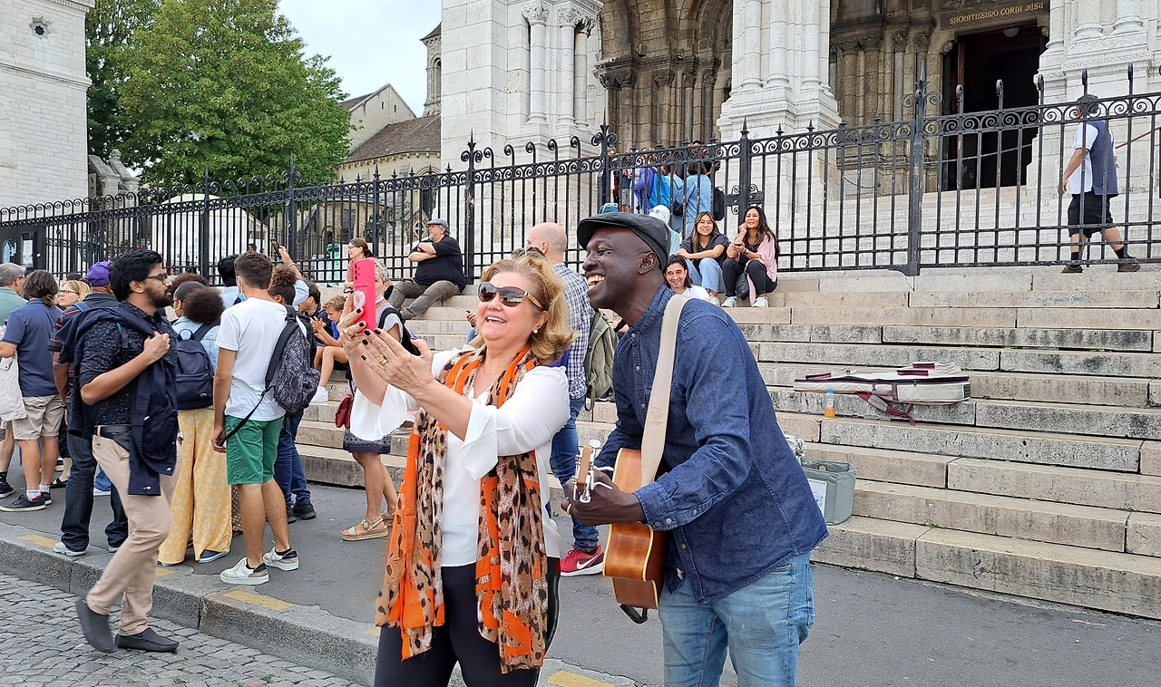 보불전쟁의 희생자를 기리기 위해 세워진 성당을 향해 계단을올랐다. 어디선가 귀에 익은 팝송이 들려왔다. 성당 바로 앞 계단에서 흑인 가수가 기타를 메고 흥겹게 버스킹을 하고 있었다. 성당의 왼쪽 문으로 입장하여 내부를 구경하고, 잠시 긴 의자에 앉아 묵상을 하다가 오른쪽 문으로 나올 때까지도, 그의 노래는 그칠 줄을 몰랐다. 한 백인 여성이 그를 배경으로 셀카를 찍으려 하자, 노래를 부르며 다가가서는 얼굴에 함박웃음을 지어주기도 했다. 팬서비스가 만점인 그에게 나는 지갑의 동전을 모두 털어서 바구니 안에 넣어 주었다.