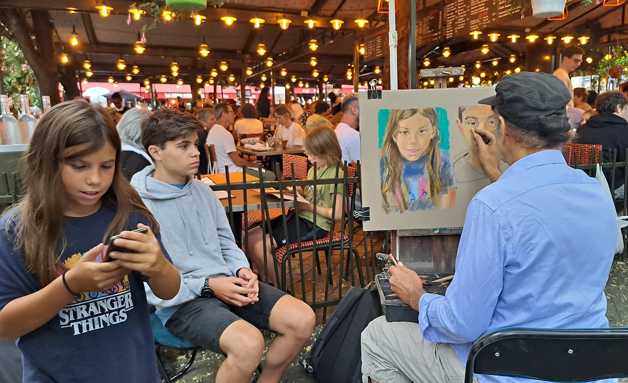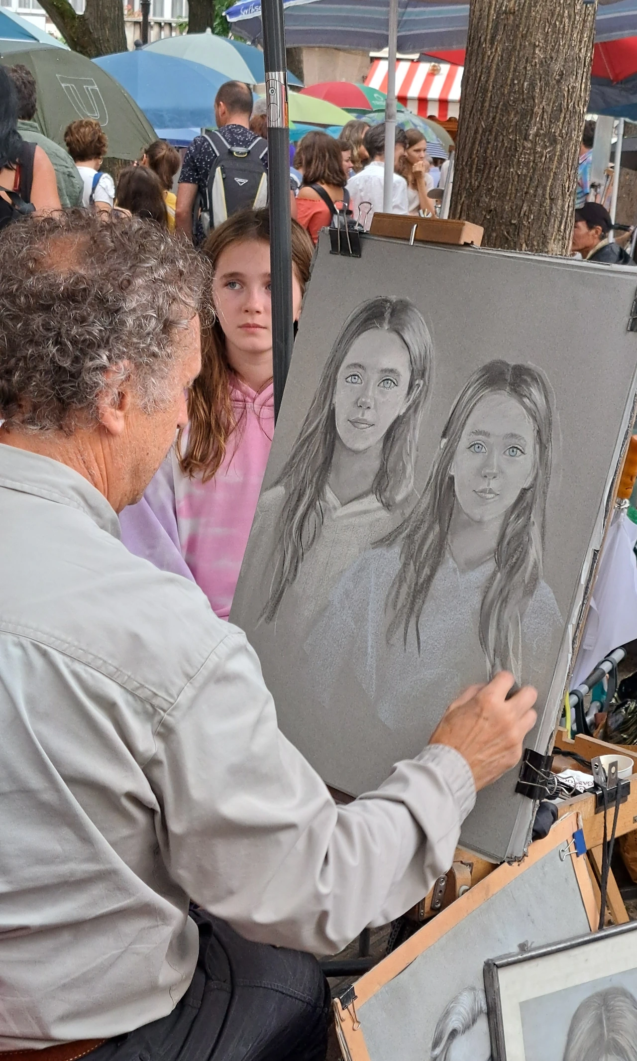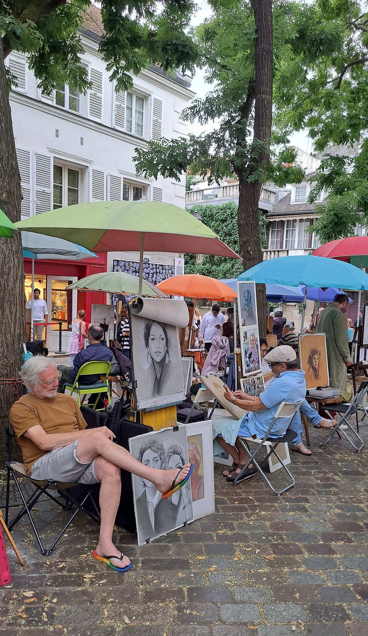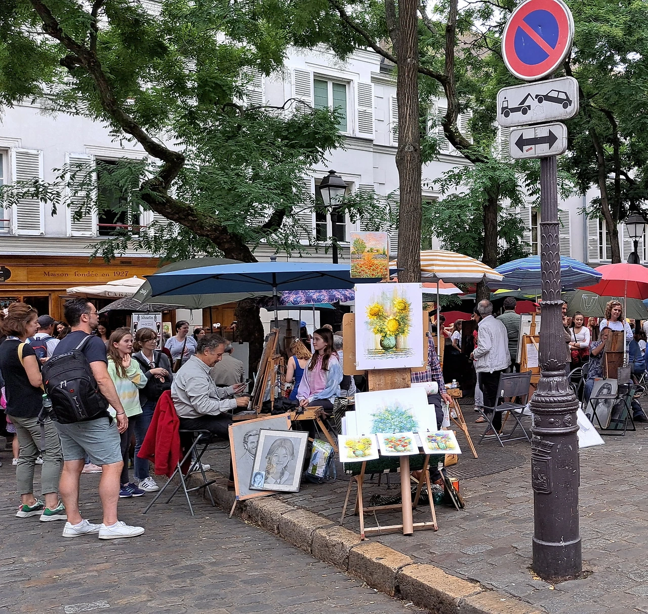 몽마르트르에선 역시 초상화가들의 인기가 제일 좋았다. 어딘가 슬픈 눈망울을 간직한 소녀는 화폭에서 초롱초롱한 눈빛으로 성숙하게 변신하였다. 먼저 모델을 끝낸 개구쟁이 소녀는 점잖은 오빠가 모델을 서는 동안, 스마트폰에 코를 박고 키득거리고 있었다. 가끔은 풍경화를 내건 화가에게 관광객이 몰리기도 하였다. 어깨너머로 들여다보니 유독 에펠탑 그림이 많았다. 다양한 계절과 날씨를 배경으로 우뚝 솟은 에펠탑은 늘 파리의 상징이었다. 나는 구상과 추상을 넘나들며 자신만의 화풍을 담은 개성 있는 그림들이 보기 좋았다.가격도 그리 비싼 편은 아니었다.