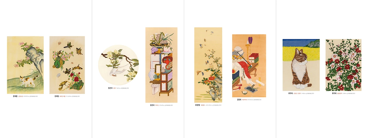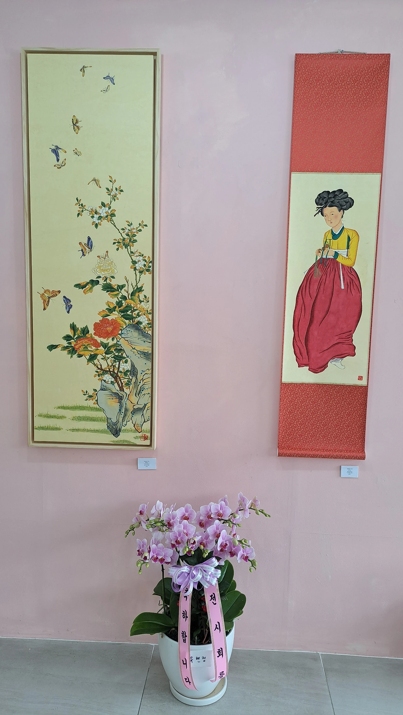 2023 민화 전시회 출품작, 미인도(좌)와 화접도(우)