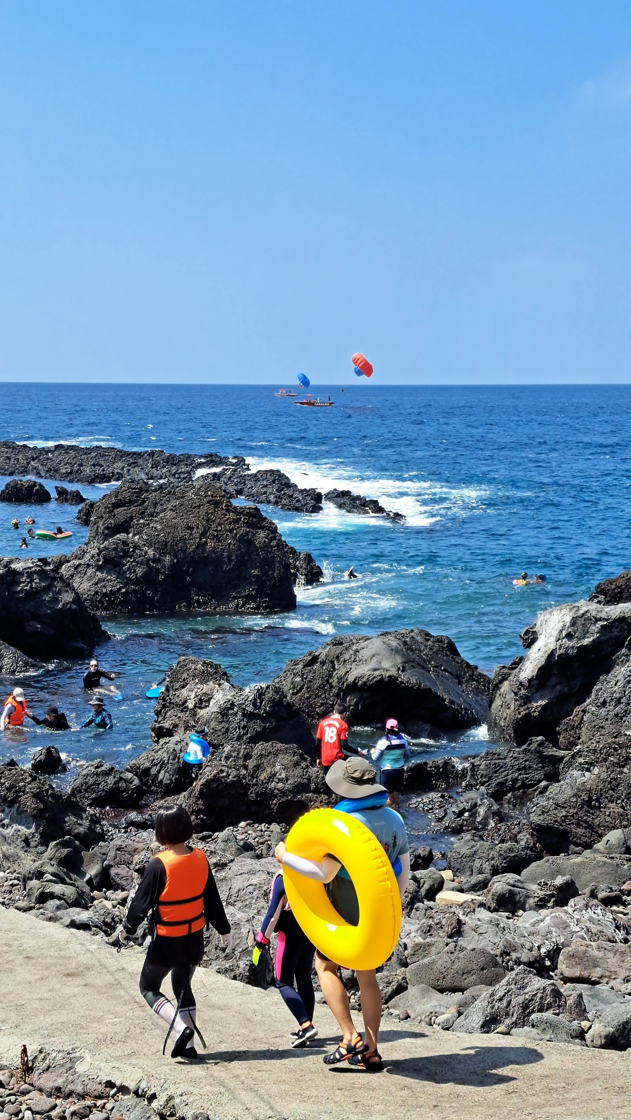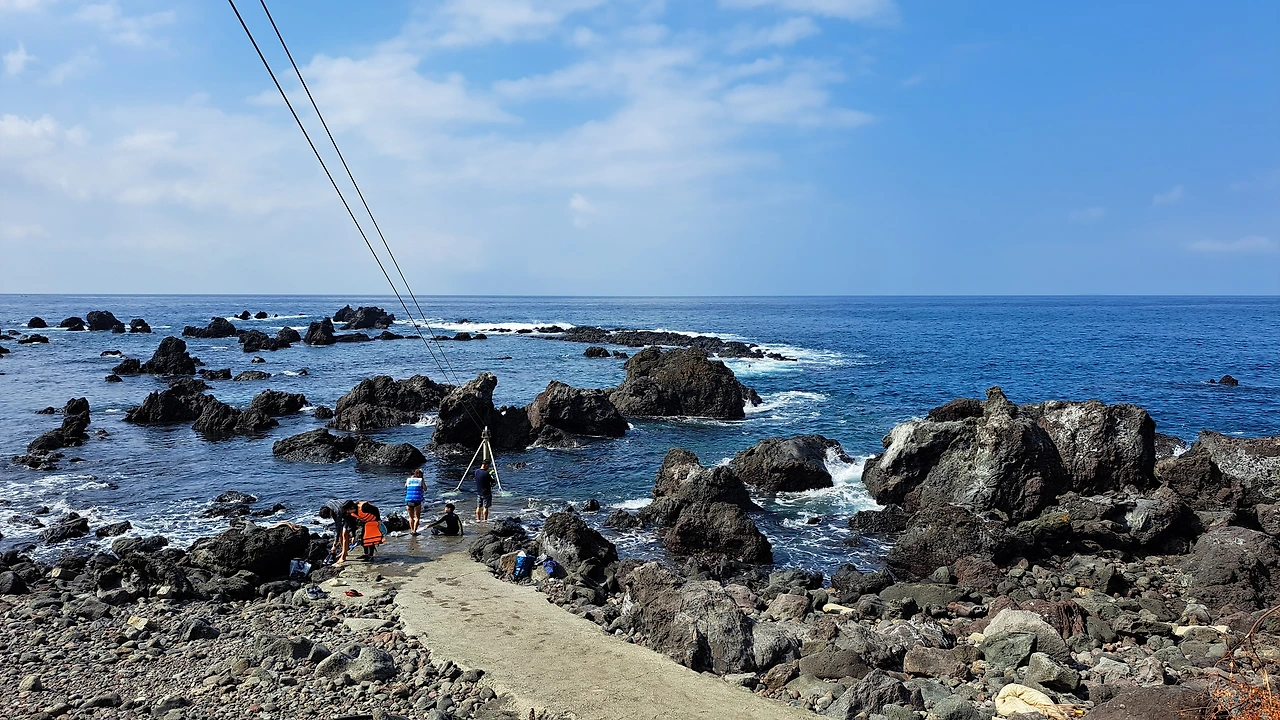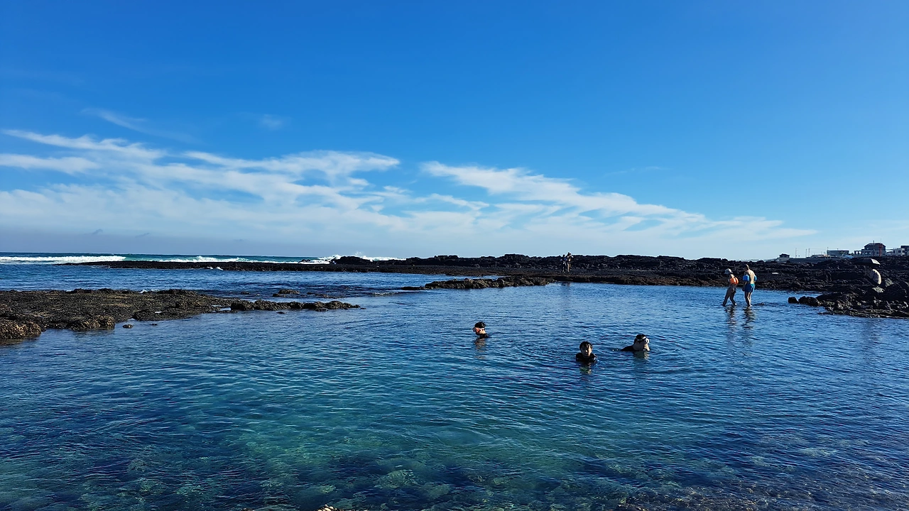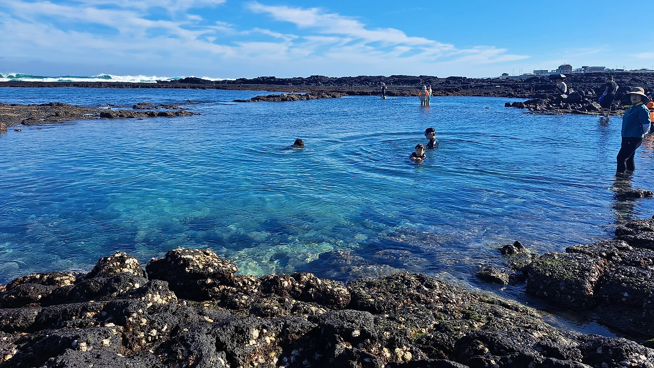 절벽이 발달한 서귀포엔 마땅히 놀만한 해변이 없다. 중문에 색달해변이 있긴 하지만 차로 30여 분 거리인 데다가 깊고, 파고가 높기로 유명하다. 40분 거리의 표선 해비치는 백사장이 넓어서 엄마의 품처럼 포근하고 아름답지만, 수심이 얕아 재미가 덜하다. 더구나 모래해변은 사람들이 많이 몰려들기 때문에 고운 모래가 부유하면서 물을 혼탁하게 만든다. 지난달에 제일 먼저 달려간 금능 해수욕장도 해안가로 밀려드는 해초와 부유하는 모래로 바닥이 보이질 않아 실망스러웠다.