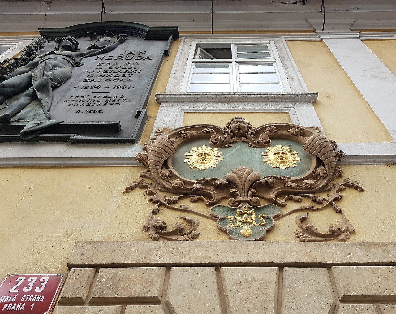 새벽에 프라하 성을 산책하며 비투스 성당과 구왕궁, 황금소로 등의 위치를 확인해두고 다시 숙소로 내려오는 중이었다. 왕궁 아래 귀족들이 살던 네루도바 거리의 집들은 번지수가 없던 시절, 그림이나 조각으로 문장을 만들어서 자신의 집을 표시하였다. 독특한 문장을 찾아보는 재미로 이 집 저 집을 기웃거리다가, 나는 체코의 국민화가 알폰스 무하가 살던 집을 발견하였다. 놀랍게도 프라하 성 아래에 머물던 레지던스 바로 윗집이었다. 대문 위 벽에 붙여놓은 무하의 얼굴 부조 아래에는 그의 필체와 함께 그가 그곳에 머물던 시기(1911-1924년)가 적혀 있었다. 100년의 시차를 두고 서로 이웃한 뜻밖의 인연은 앞으로 그와의 만남을 예고하는 시그널이었다.