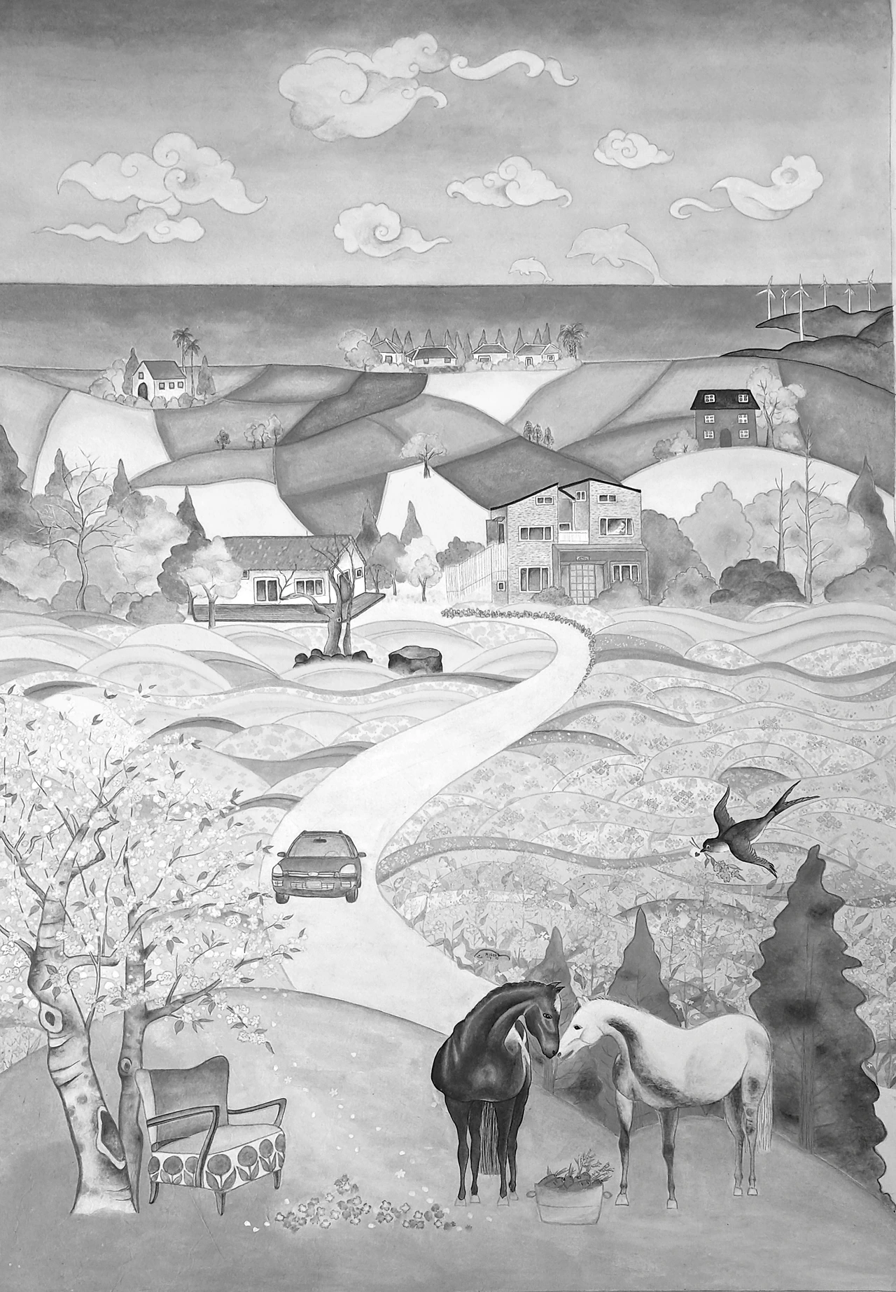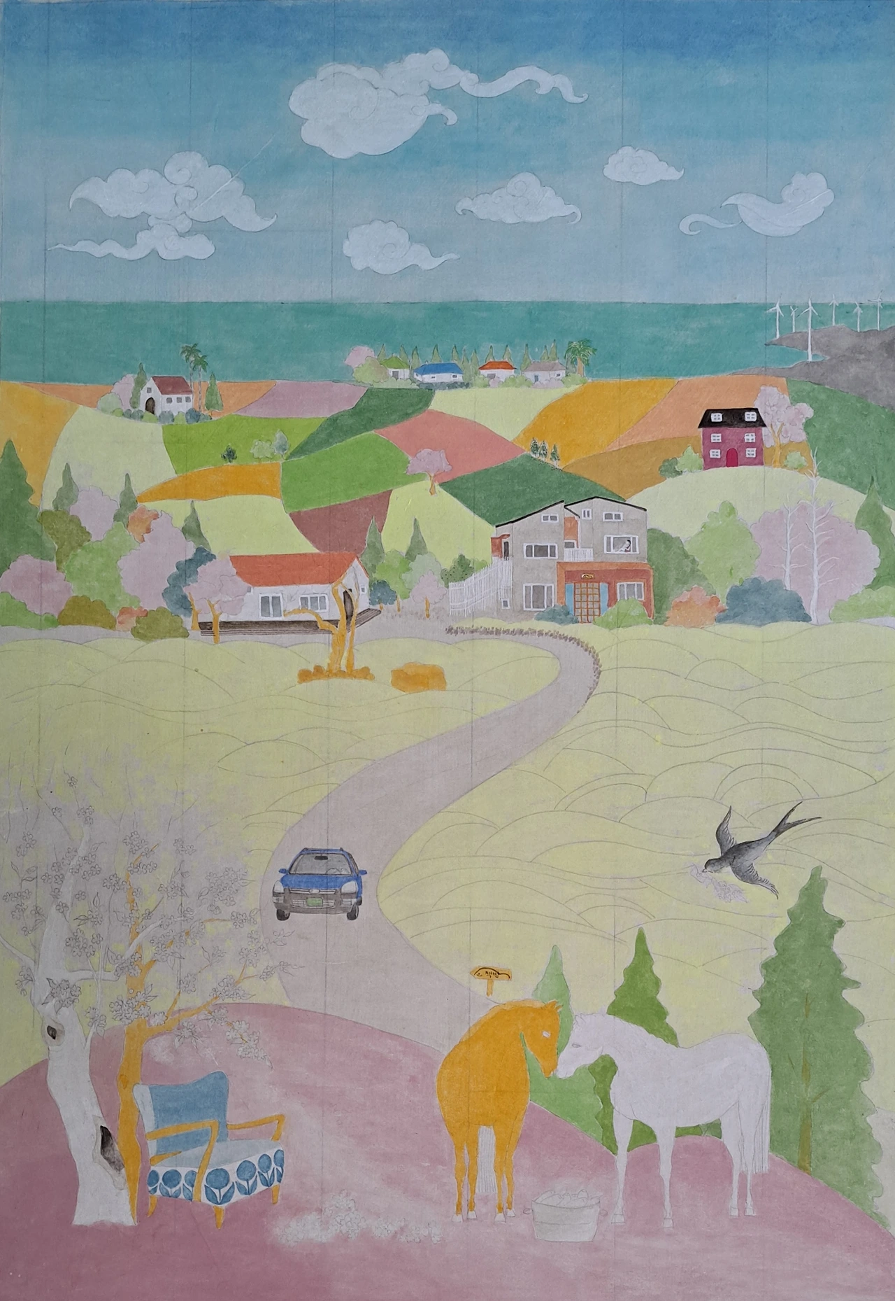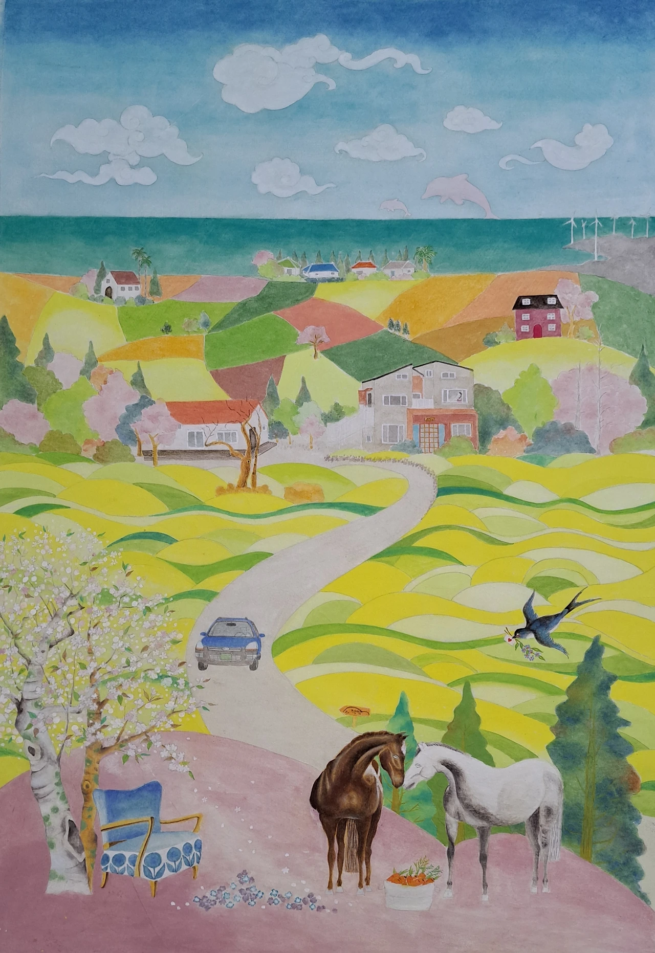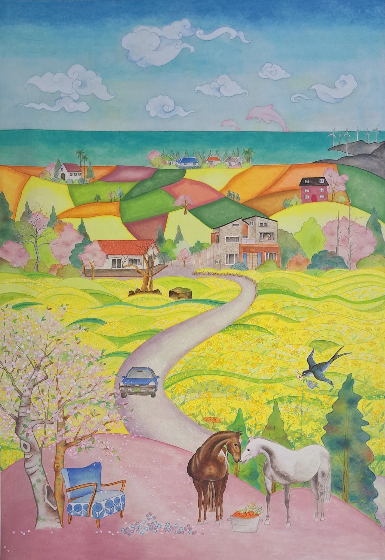 그림 사이즈가 대폭 커지면서 유채밭에 꽃을 한 송이씩 피우느라 시간이 아주 오래 걸렸지만, 나는 행복했다. 그림을 그리는 내내 미소가 피어올랐다.