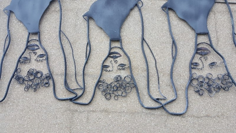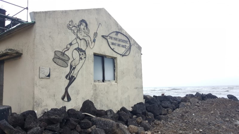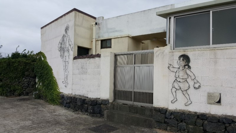 담벼락에 금속으로 작업을 하다니 많은 수고와 어려움이 감지되었다. 그렇기에 차갑고 단단한 쇠가 섬세하게 감정을 표현해내며 따스함을 전한다는 사실이 더욱 인상 깊었다. 가장 마음을 끈 작품은 마을 주민들의 생업이자 대표 직업인 해녀들의 모습이었다. 제주의 어머니라고도 할 수 있는 해녀는 깊게 파인 주름이 수심 어린 얼굴을 가득 덮었다. 파도가 거세지던 날이어서 그랬는지도 모르지만, 모진 삶의 현장이 숨비소리처럼 가쁘고 적나라하게 다가왔다. 하지만 때로는 천진하고 귀엽게 때로는 모든 것을 척척 해결하는 원더우먼으로 경쾌하게 변신하며 미소 짓게 하였다.