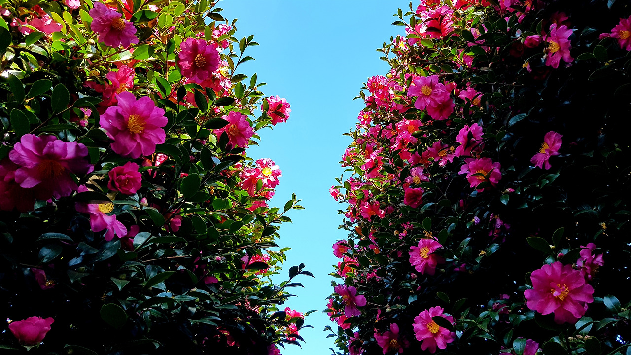 인도의 명상가 오쇼 라즈니쉬가 삶과 죽음을 통찰하고 했던 말처럼, 아기 동백은 죽음의 순간 오히려생의 절정으로 치달으며치명적인 아름다움을 뿜어내고 있었다. 질리도록 선명하고 화사한 핑크빛 동백 꽃밭을 거닐며 우리는 잠시 행복을 만끽했다. 꽃밭 가득한 꽃들의 세상 속에서 그들과 하나로 녹아드는 순간에 어찌 감탄하지 않고 기쁘지 아니하겠는가?