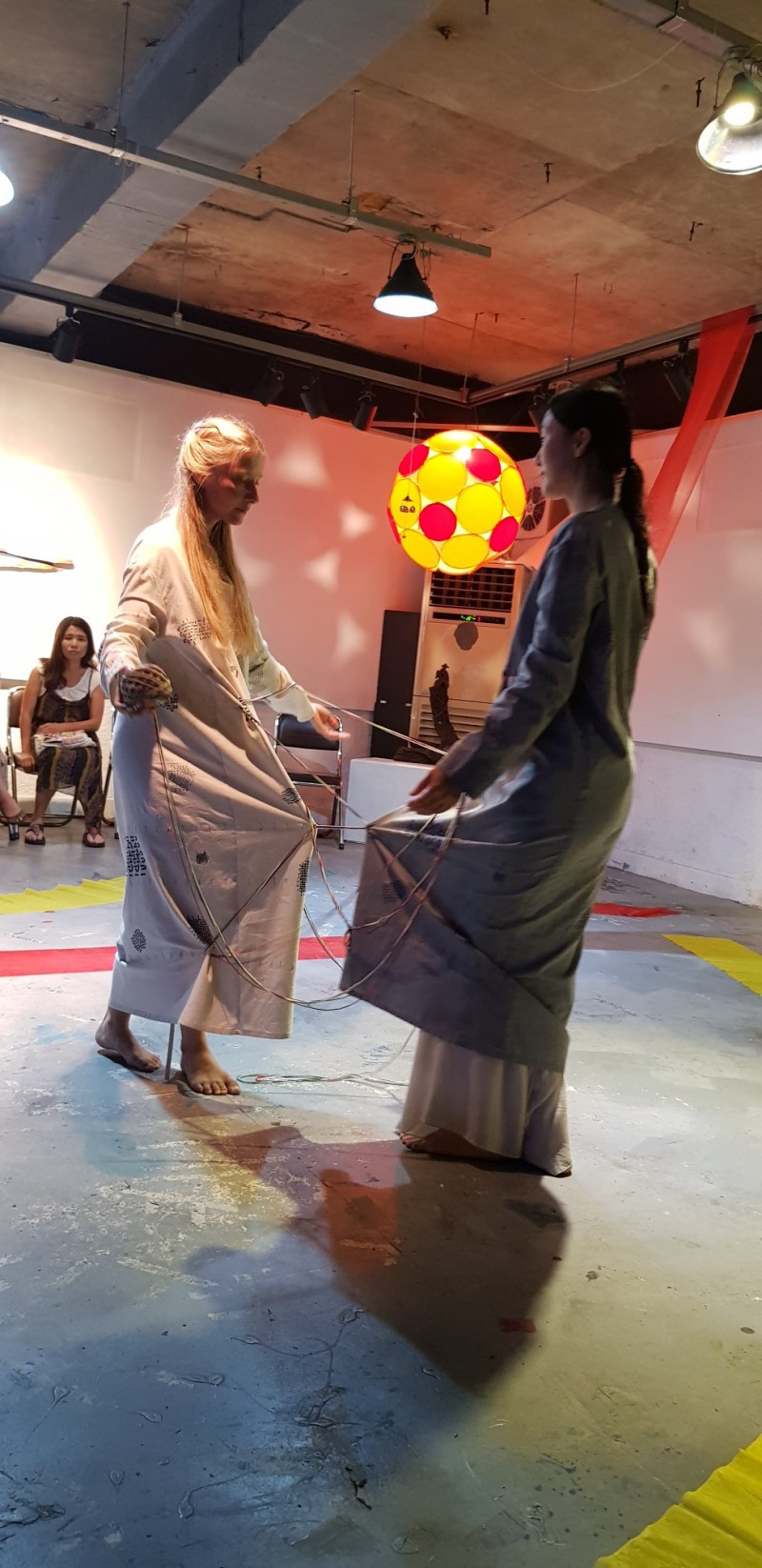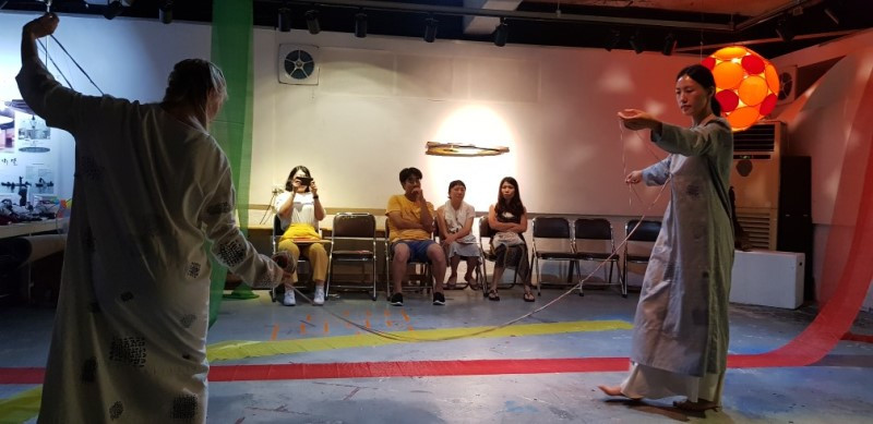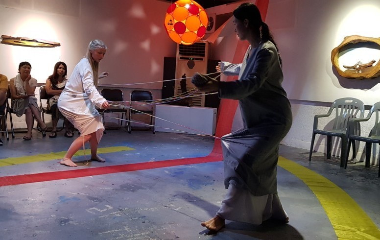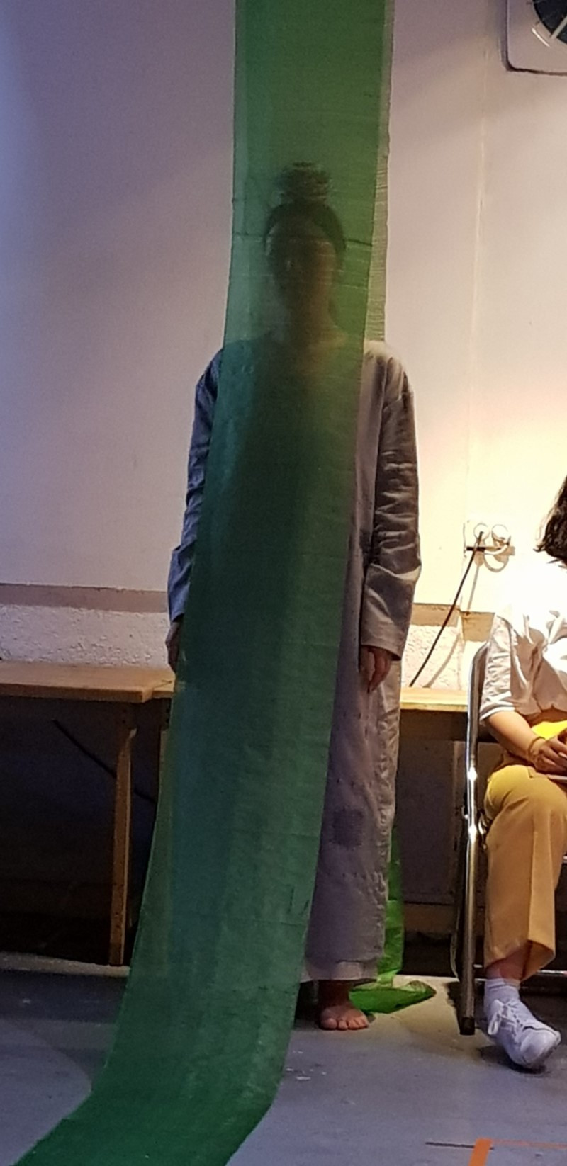 서빳의 무대는 오색 천으로 장식되어 있었다. 배규자는 초록색 천 뒤에서 머리에 실타래를 얹고, 카타리나는 빨간색 천 뒤에서 노란색 천 두루마리를 들고 대기하고 있었다. 오색 천은 관계의 다섯 가지 차원을 상징한다. 육체적 관계에서부터 정신적, 감정적, 경제적인 관계와 영적인 차원에 이르기까지 폭넓은 관계를 의미한다. 사랑도 관계이다. 대상이 연인이든 친구이든 부모와 자식이든 사랑은 관계 속에서 자라거나 시든다. 노르웨이에서 활동하는 배규자와 카트리나, 두 작가도 함께 팀을 이루면서 관계 속에서 성장해왔을 터였다.