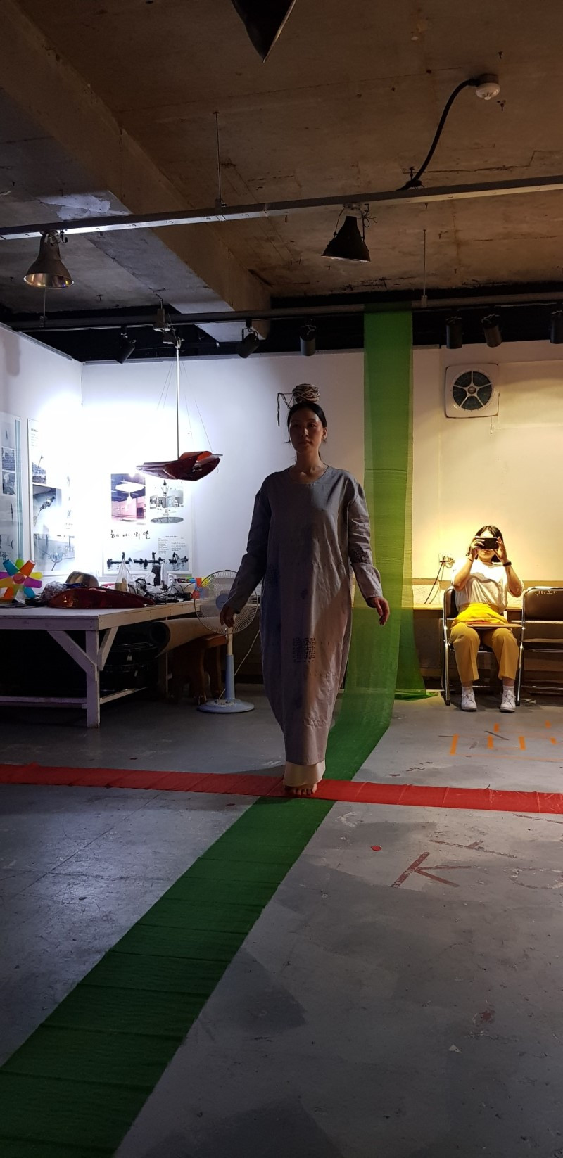나는 배규자 작가가 머리에 오색 실타래를 이고 중심을 잡으며 홀로 걷는 행위에 주목했다. 자신의 정체성인 초록색 천을 따라 조심스럽게 걷다가 카타리나의 빨간색 천과 교차하는 지점에서 인연이 스쳤다. 인연이 필연을 넘어 운명으로 발전하기 위해서는 각자의 홀로서기가 필요하다. 홀로 설 수 있는 사람만이 건강한 관계를 유지할 수 있기 때문이다. 그런 사람만이 상대를 소유하려 하지 않고 관계에 집착하지 않는다.