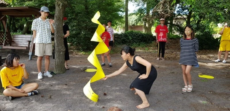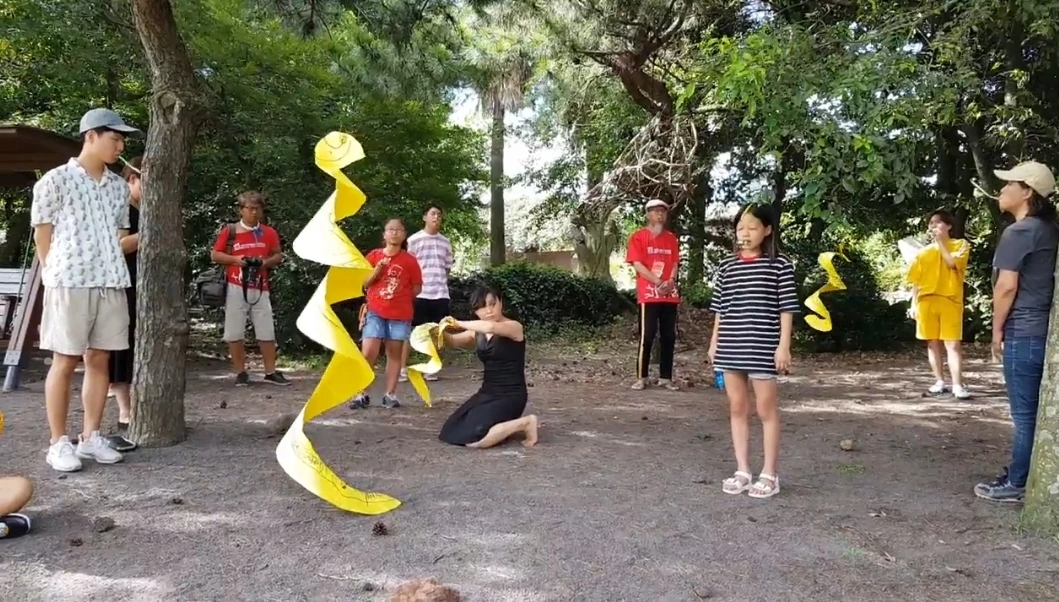 나는 이번 무대가 불완전한 언어를 대신하여 마음으로 소통한 공연이었다고 생각한다. 공연 내내 그녀를 위해 호루라기를 불어주던 관객들이 마음을 따뜻하게 나눴기에 가능한 일이었다. 작가는소리가 메아리 되어 자신의 피부로 전해지는 관객의 마음을 느꼈고, 그 마음을 받아 소리를 그림으로 표현하였다. 이보다 더 아름다운 소통이 있을까? 그녀가 소리를 그린 종이를 선 따라 오려서 나뭇가지에 매달자, 그것은 바람에 날리며 나선형으로 춤을 추었다. 종이가 춤을 추는 모습은 다시 소리로 메아리 되어 이번에는 시각이 청각화 되는 마법을 일으켰다. 여기저기서 제멋대로 불어대는 호루라기 소리도 마음이 다 같이 하나로 모아지면서 천상의 소리처럼 조화롭게 다듬어졌다. 무대와 객석의 경계가 사라지고 작가와 관객이 함께 만들어낸 멋진 앙상블이었다.