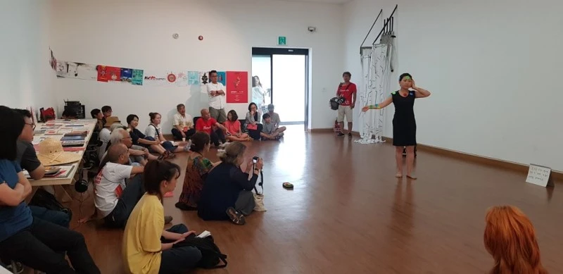 뒤풀이에서 다시 만난 박주영 작가는 야무지고 성격이 밝았다. 아직은 청각이 완전치 않아서 도우미가 그녀를 곁에서 도와주고 있었지만, 역시 신체의 장애가 마음의 장애를 뜻하는 건 아니었다. 그녀는 당당했다. 타인에게 자신의 약점을 온전히 드러낼 수 있다는 건, 자신을 객관화시킬 수 있는 힘이 생겼다는 증거이다. 정상인이라고 해서 다 그녀만큼 당당하지는 못할 것이다. 그녀는 행위예술로 자기 치유를 완성하고 자신의 인생을 승리로 이끌고 있었다.
