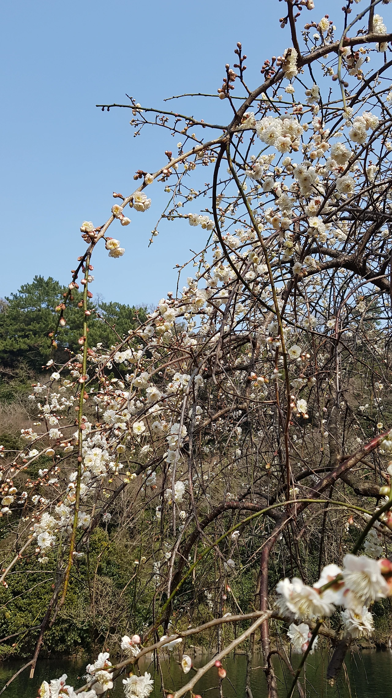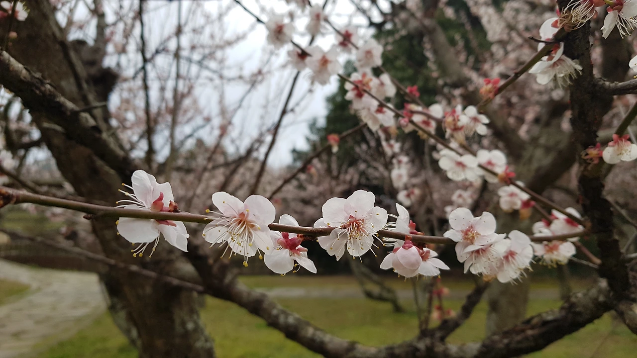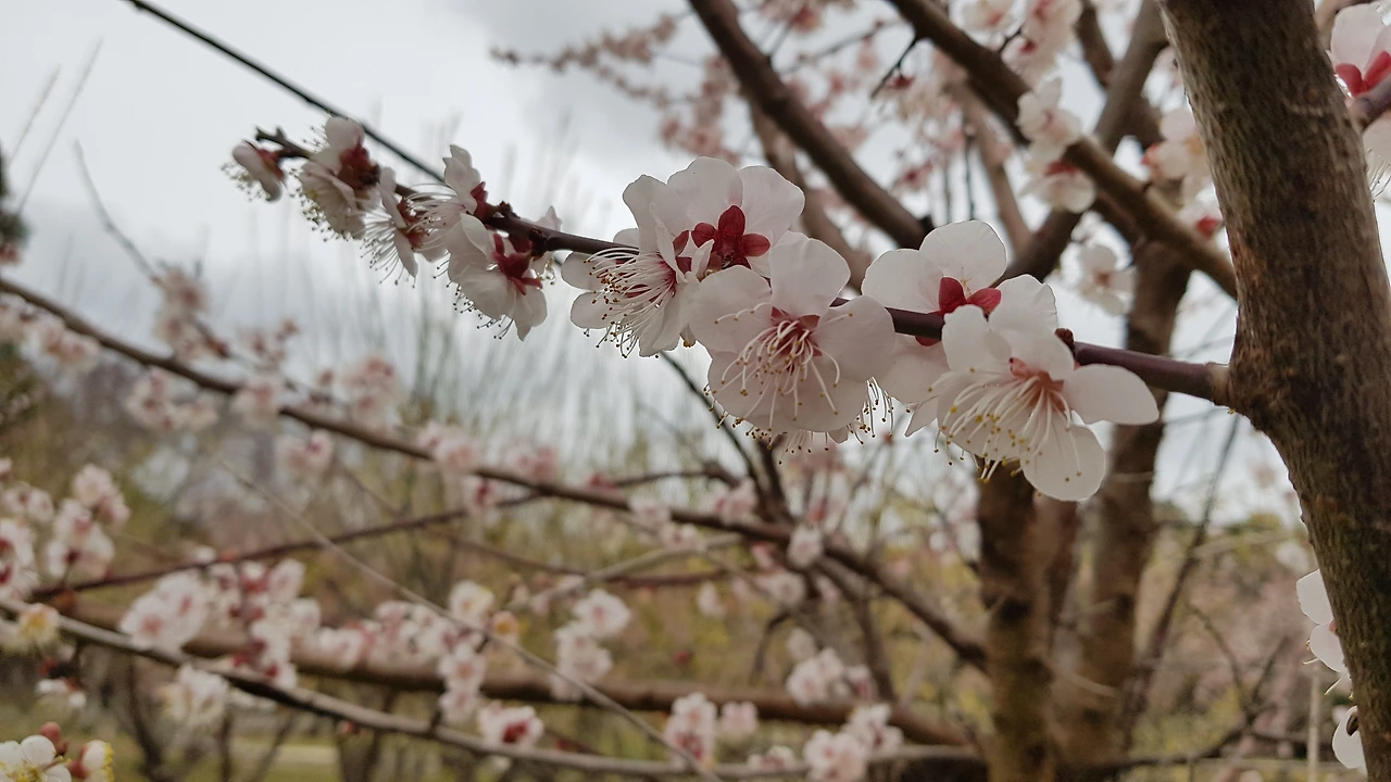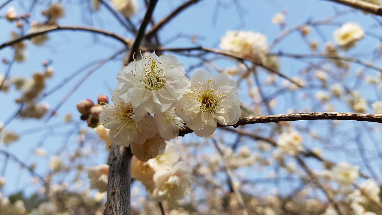 바람이 거셌지만, 나는 아쉬움을 달래려 매화원을 어슬렁거리며 배회했다. 신기하게도 새봄을 맞아 새로 자란 매화나무 가지들은 하나같이 하늘을 향해 수직으로 곧게 뻗어 올랐다. 그 기운이 어찌나 힘차 보이던지 하늘에서 보이지 않는 손이 힘껏 끌어당기는 듯하였다.관광객인 듯한 젊은 처자들이 웃음을 꽃잎처럼 까르르 휘날리며 겨우 몇 송이 가까스로 매달린 매화나무 사이에서 서로 사진을 찍어주고 있었다. 가까이 다가가 보니 일찍 꽃을 피운 청매화는 꽃받침과 수술만 나뭇가지에 대롱대롱 매달려 있었고, 뒤늦게 꽃을 피운 홍매화만이 간간이남아 있을 뿐이었다. 이제야 얼굴을 내민 꽃망울은 모진 바람을 맞아 파르르 떨면서도 안간힘으로 버티고 있었는데, 오늘 같은 강풍에는 실로 위태로워서 더욱 애잔하였다.