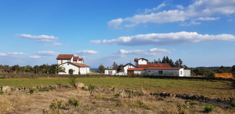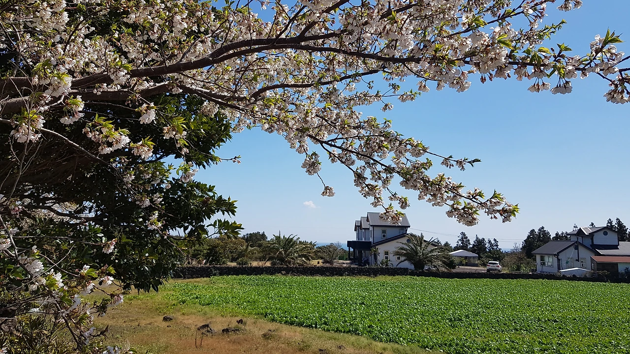 부랴부랴 난산리에 도착하니 그 길도 벚꽃이 만개하였다.제주도 온 천지가 벚꽃의 물결이다. 아침부터 불기 시작한 강풍으로 미세먼지는 어느새 다 날아가 버리고 하늘은 드높고 청명했다. 바람이 만들어 놓은 뭉게구름만이 두둥실 평화롭게 떠다니고 있었다. 난산리는 바로 이 평화로움이 나를 그토록 잡아끌었던 땅이다.