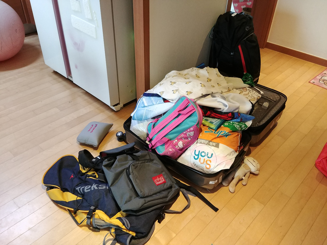 여행을 가는 사람들마다 스타일이 다를 것 같다. 캐리어에 바리바리 싸들고 가는 사람도 있고 배낭 하나만 달랑 메고 가는 사람들도 있고, 우리처럼 캐리어랑 배낭 섞어서 가는 사람들이 있을 것이다. 아이들이 태어나기 전에 우리 스타일은 배낭이었다. 여행에서 두 손이 자유로워야 한다는 게 나의 여행 스타일이었다. 그런데 아이들과 같이 가니 어렵다. 짐들이 배낭에 다 들어가지가 않는다. 아마도 우리 아이들이 중학생 정도 될 때까지는 짐을 바리바리 들고 여행을 갈 것 같다.
