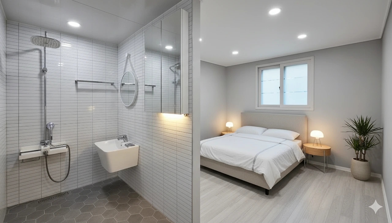 구조와 자재는 년식에 비해 신축스러뤘고, 마감재도 세련된 느낌을 주었습니다.
