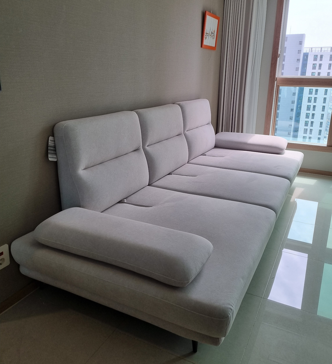 이 소파의 가장 큰 장점은 뭐니 뭐니 해도 가격인데, 수도권이 아니라서 배송비를 8만 5천 원이나 냈음에도 불구하고 구매부터 설치까지 총 72만 원 정도밖에 들지 않았다. 제일 처음 마음에 들었던 소파가 250만 원이 넘었던 것을 생각하면 엄청난 가격이다. 착석감에 다소 차이가 있긴 하지만 기능과 디자인이 비슷한 소파를 3분의 1도 안 되는 가격에 샀으니 그 정도는 감수하고도 남는다.