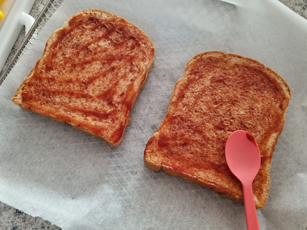 재료 준비가 완성되었다면 피자 만들기가 반 이상 진행된 것이다. 그다음은 쉽다. 이제부터는 아이와 함께 하는 시간이다. 재료 준비가 다 되었다고 아이를 부르니, 아빠와 함께 분갈이를 한다고 오늘은 엄마 혼자 만들란다. 오예! 오히려 좋아. 오랜만에 맞이한 고독을 즐기며 먼저 식빵에 케첩을 듬뿍 바른다.
