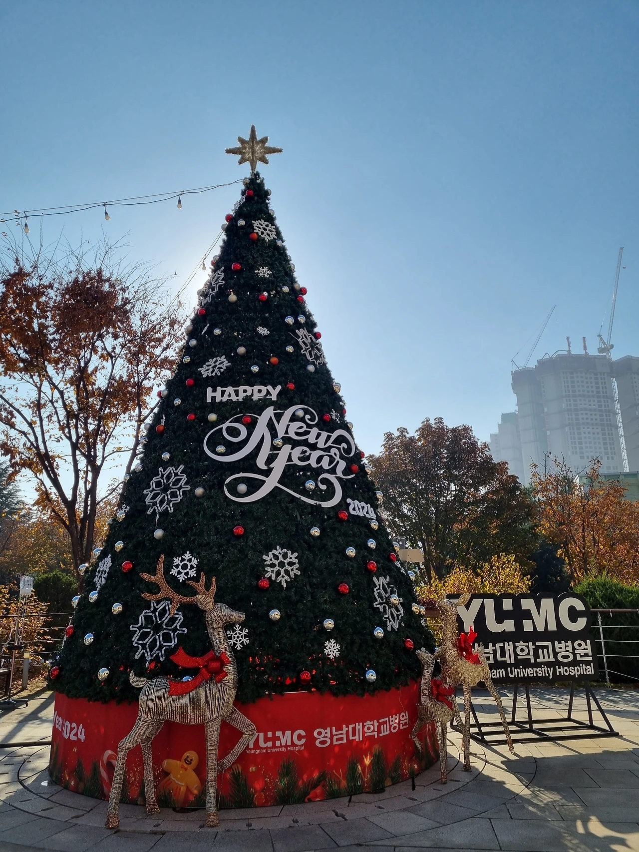 직업환경의학과 데스크에서 퇴짜를 맞고 마스크를 사러 갔던 길이 생각났다.건물 1층에 있는 편의점에서 마스크를 구매했는데문 옆에 바로 있는 엘리베이터를 보지 못하고 왔던 길을 되돌아 다녀왔었다. 그 바람에 시간이 더 오래 걸렸지만, 덕분에 예쁜 트리를 볼 수 있었다.