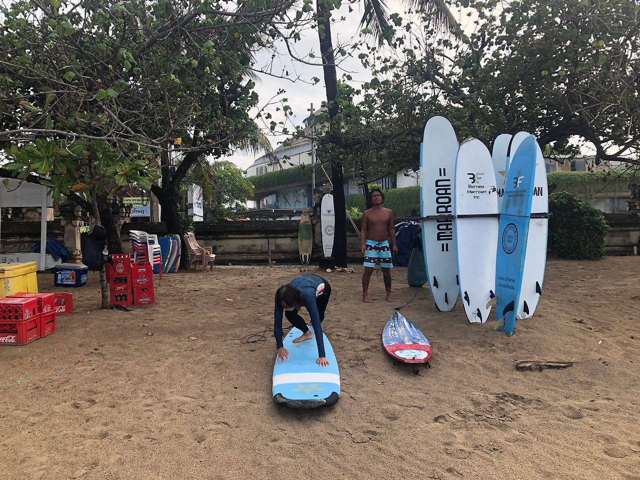 발리에 머무는 동안 하루라도 더 많이 서핑을 하고 싶은 욕심에 도착한 다음날 아침부터 시작하기로 했다. 마치 초등학교 1학년 때 봄 소풍을 가던 아침처럼 설렜다. 숙소에서 해변까지 몸도 풀 겸 걸어서 가려고 했으나 늦잠을 자서 택시를 타고 가야 했다. 아침도 못 먹고 물만 한 잔 마시고 출발했다.