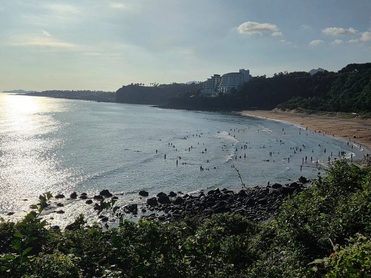 아직도 물놀이에 여념 없는 해안가의 사람들