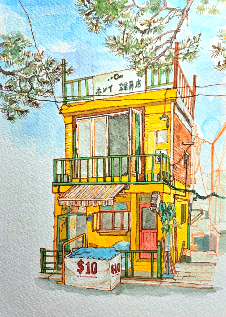 결국은 화사하게 마무리된 노란 외벽의 가게