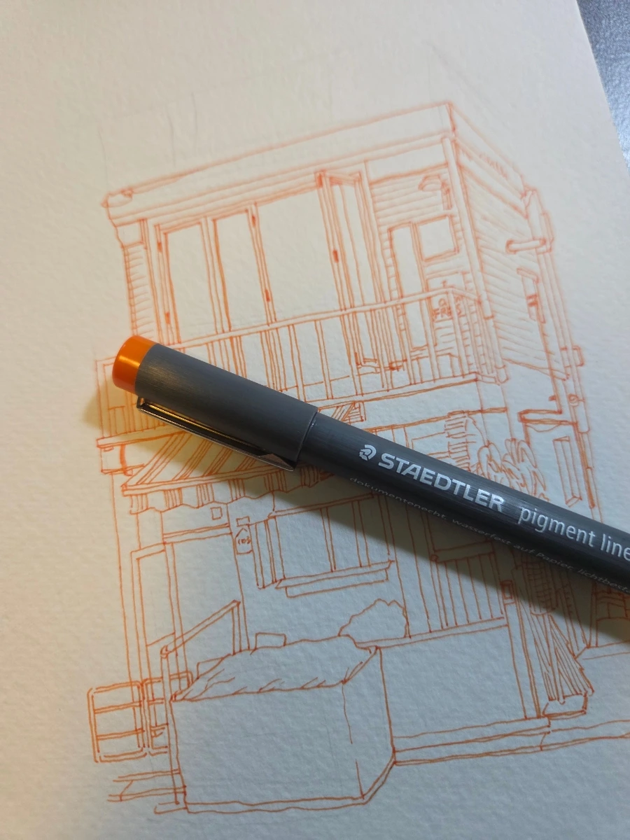 조금 더 진한 브라운 펜을 꺼내 라인을 정리했다.