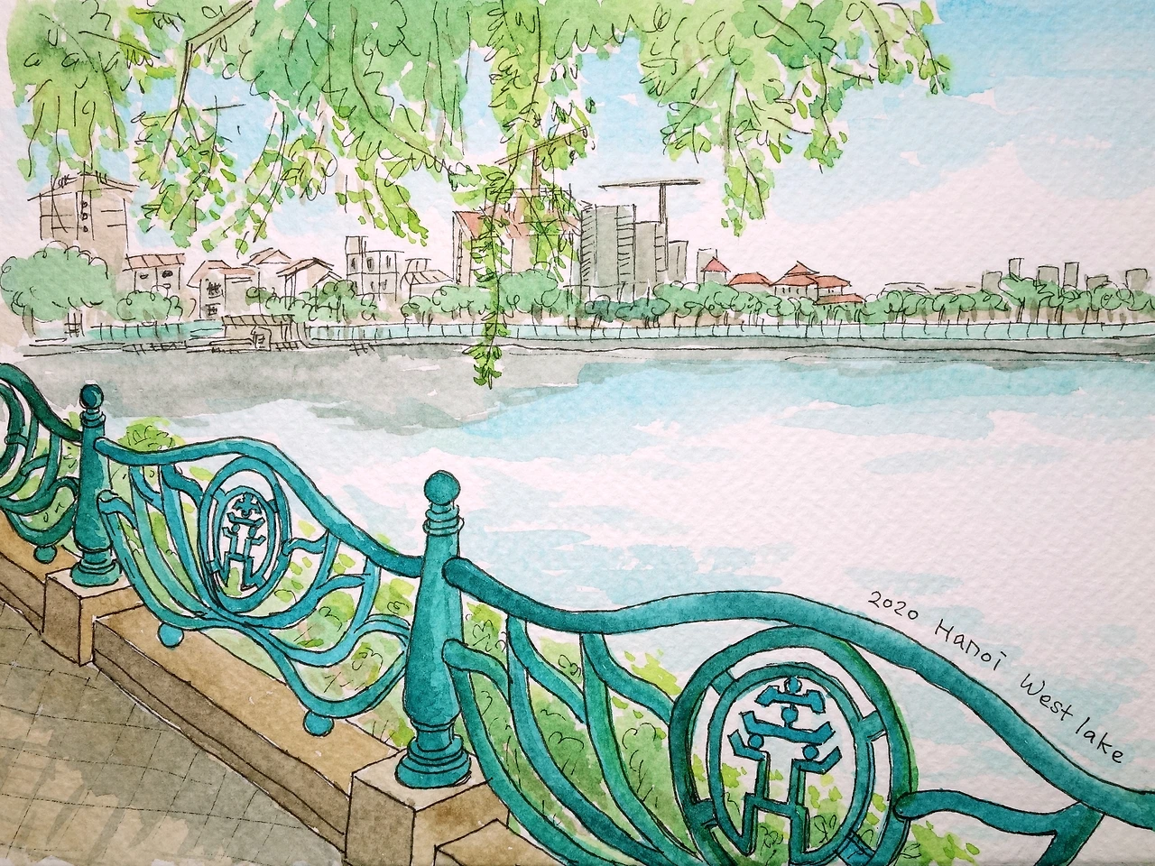 하노이 서호, 이렇게 그림으로 보는 게 제일 예쁘다.하노이에는 홍강과 서호라는 제일 큰 호수 말고도 작은 호수들이 굉장히 많습니다. 멀리서 보면 분위기 있고 아름답지만 조금만 가까이 가면 악취가 나서 한적하게 바라볼 수가 없습니다. 동네 호수를 보러 갔을 때 아이들이 석양이 호수 위에서 반짝이는 모습에 홀려 물가에 갔다가 기겁을 한 적이 있습니다. 악취도 문제였지만 물가에 온갖 쓰레기가 떠있고 심지어 죽은 쥐가 떠 있었으니까요. 하지만 바로 옆에서 사람들은 아무렇지도 않게 수영을 하고 물고기도 잡고 있었습니다.